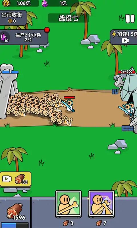 《战争超进化》是一款魔性休闲竞技游戏,清新的画风与创意玩法相得益彰,让人在游戏中轻松释放压力。只需疯狂点击屏幕,扩充士兵保卫基地,便可轻松提升自己的时代。合理规划策略,提升各项属性,挑战多种关卡,每一关都充满惊喜与不同。不同的时代具有不同的士兵,甚至还有神秘外星人的加持。快来加入这场点兵大战,成为最强的指挥官吧!