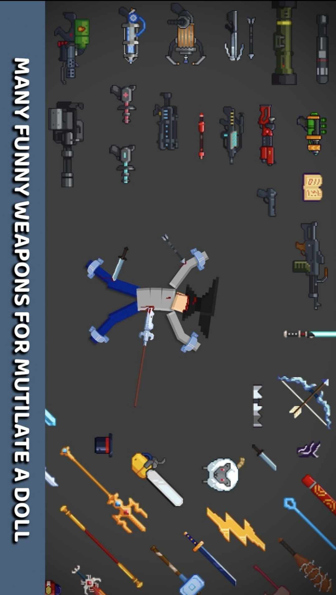 我们向您介绍:Mutilate a Ragdoll - 受有趣的童年游戏启发的沙盒 / 游乐场 / 模拟器类型游戏。你可以通过折磨你的布娃娃来放松和缓解压力,忘记你的愤怒。这是一款真正有趣的游戏,适合在无聊时玩,您可以在其中做任何您想做的事情。