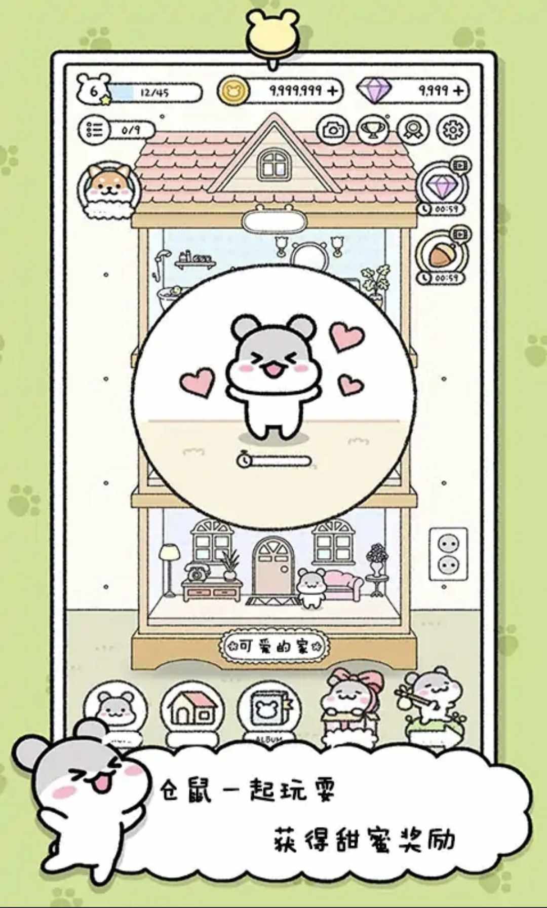 一款超可爱的模拟养宠物的游戏,玩家在游戏中可以收集各种可爱的仓鼠,到达一定的级别还可以解锁各种品种的仓鼠,给他们喂食和互动,喜欢的小伙伴快来下载吧!