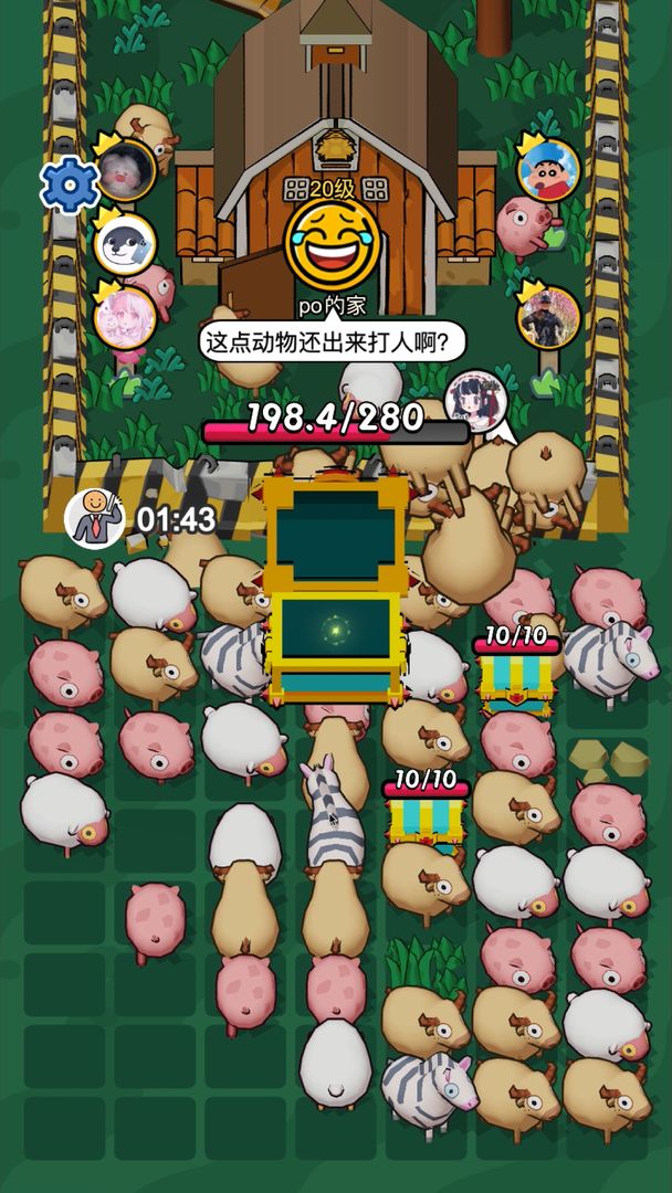 睡神飞工作室最新力作!创意可爱合成玩法!合成猪、牛、羊、大象、斑马等大军去拱对方的墙脚!与对手互相拱墙脚,带走对方的动物!