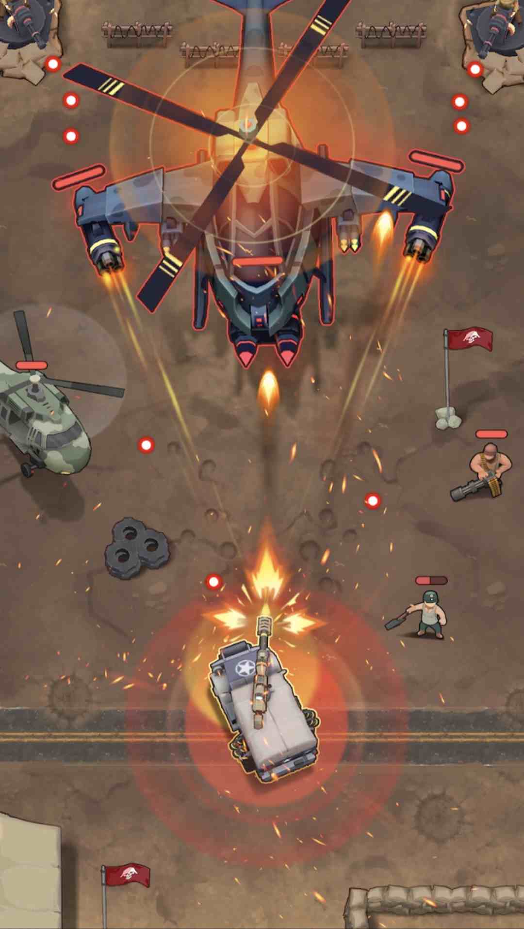 这款复古风格的射击游戏将老式街机游戏的经典魅力与现代战争游戏的激烈动作相结合。作为豺狼部队的一名士兵,你将穿越险恶的地形,躲避无情的炮火,并摧毁敌人的蓄水池和坦克。