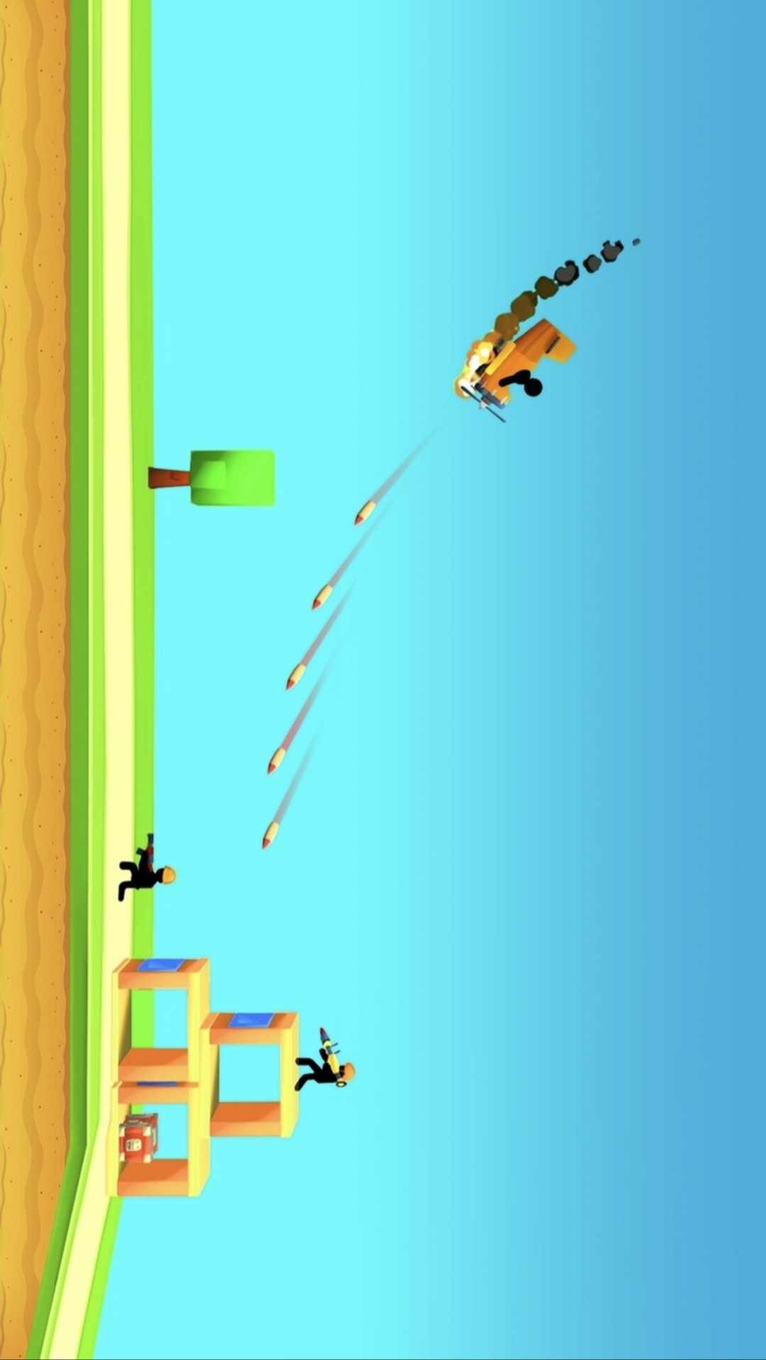 这款3D 游戏讲述的是飞机上的火柴人摧毁了位于有趣的可破坏建筑物和设备中的敌方武装火柴人人群。当你用空中射击炸弹或空气炮轰炸它们时,它们非常容易被摧毁。