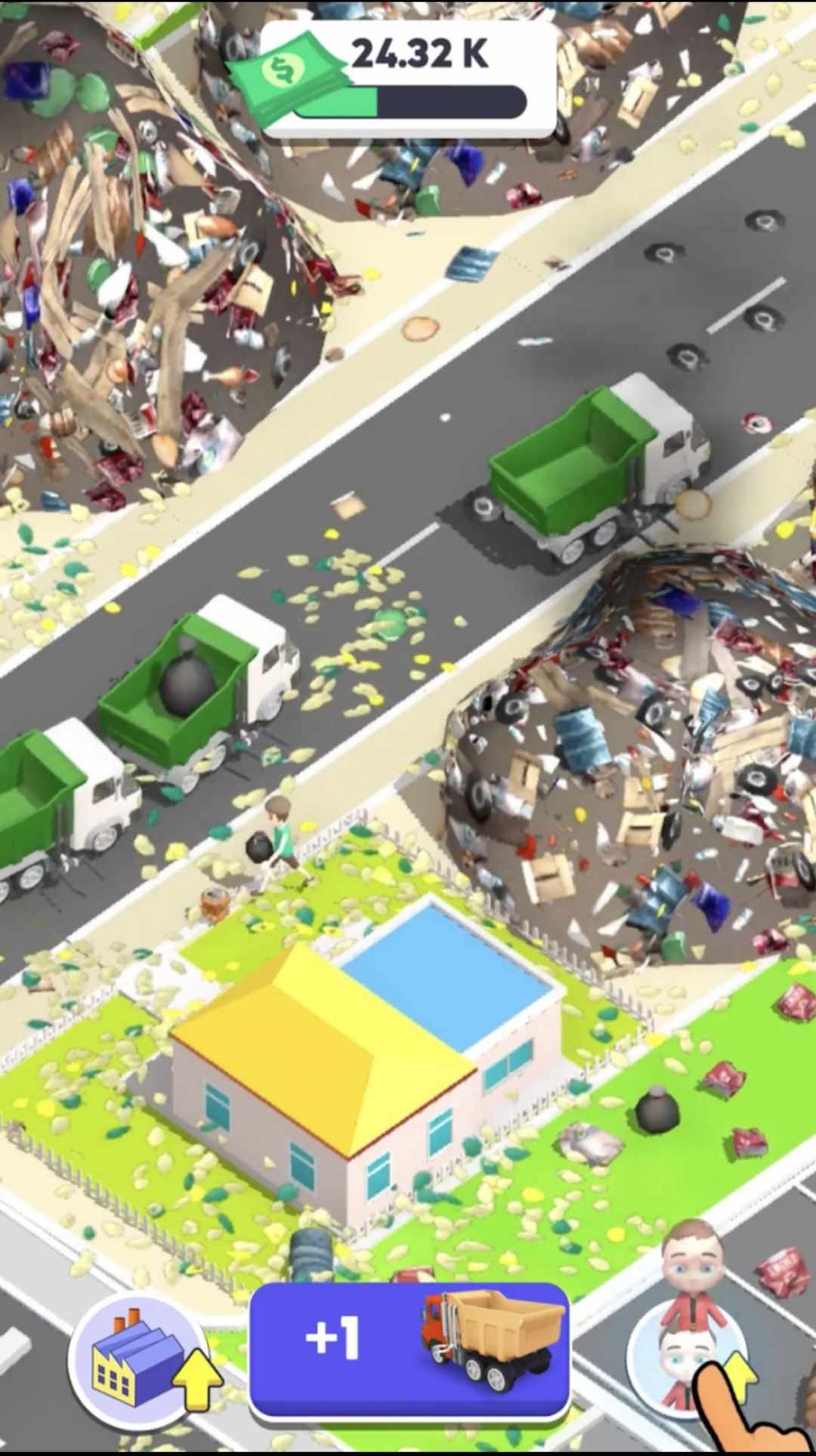 这款休闲游戏结合了城市建设游戏和卡车游戏的游戏玩法。成为工厂大亨并发展您的闲置工厂。使用垃圾车清理城市。开设新工厂并升级它们以获得更多现金。