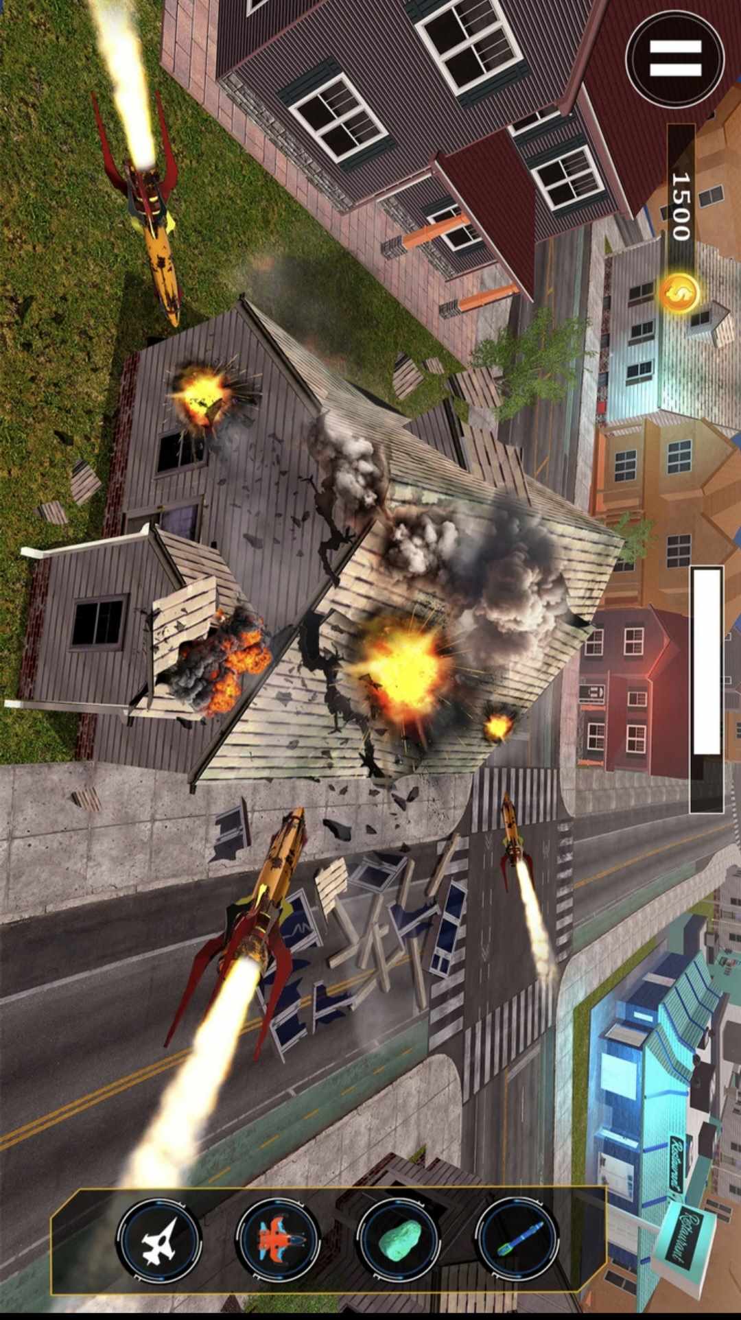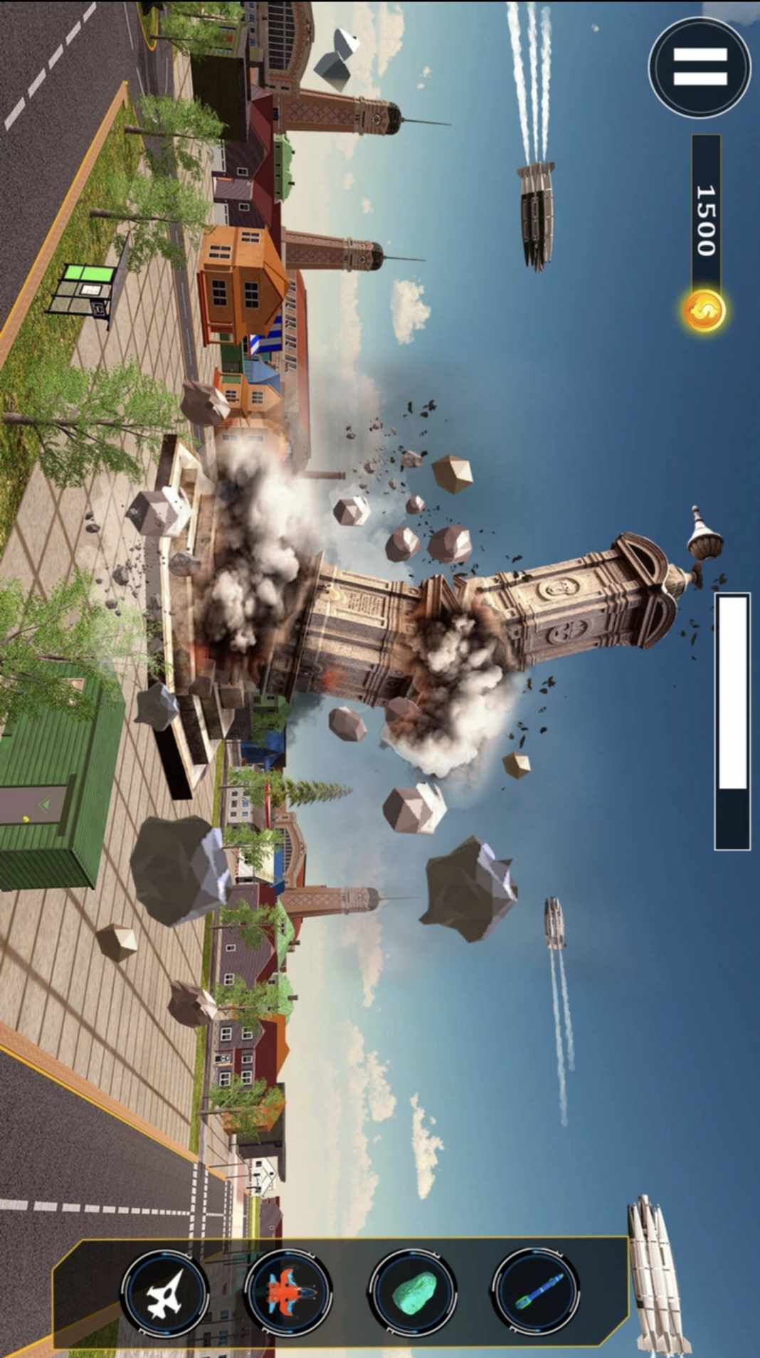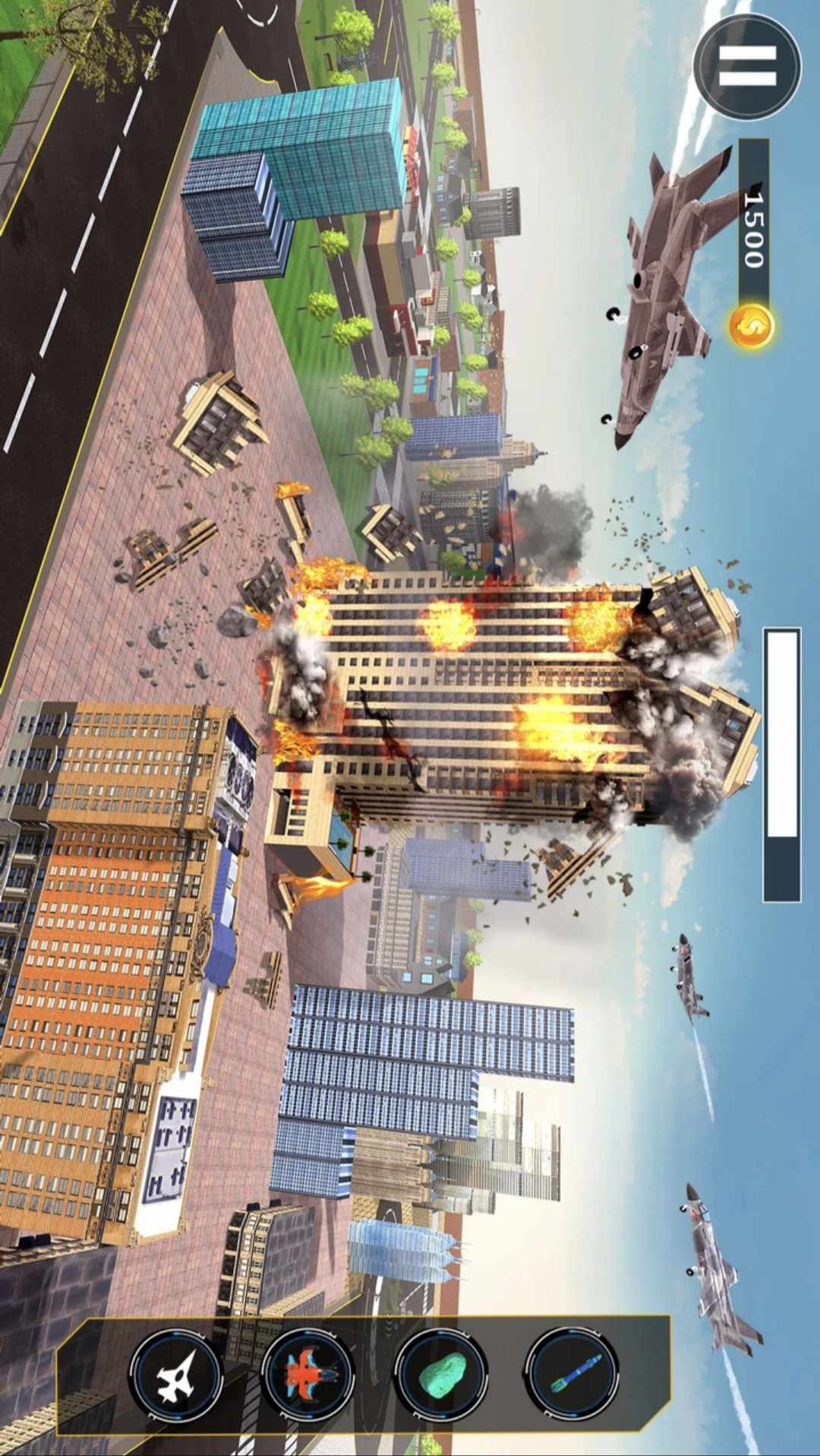 您在城市拆除灾难游戏中的目标是拆除大城市。在城市拆除游戏中,锁定目标并发射导弹以摧毁地标建筑、摩天大楼、桥梁、工厂、车辆等。城市拆除从未如此有趣!通过粉碎城市破坏游戏粉碎太阳能电池板和地标。这款离线城市粉碎游戏可让您通过城市拆除灾难游戏摧毁世界。在 0 城市破坏模拟器中拆除目标,在地图上前进。在建筑物拆除模拟器中使用有限数量的导弹最大限度地破坏建筑物。拆除游戏建筑物中的每个被摧毁的物品都会为您赚取硬币,这些硬币可用于解锁城市拆除游戏中的特殊任务。在这款粉碎和拆除游戏中,使用城市拆除火箭粉碎来拆除建筑物