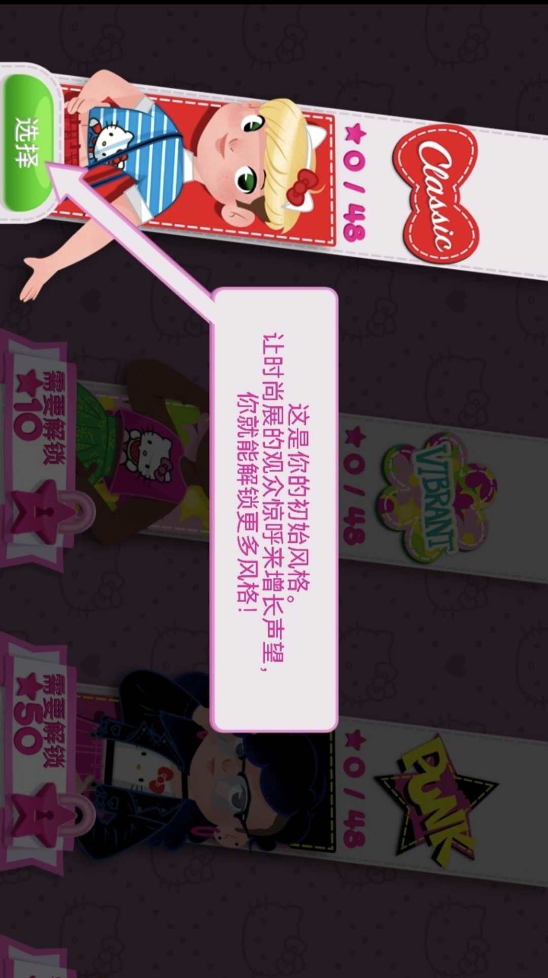 在世界各地的时尚秀中,为你的模特梳妆打扮,穿上漂亮的服装,与 Hello Kitty® 一同成为一名时尚巨星!