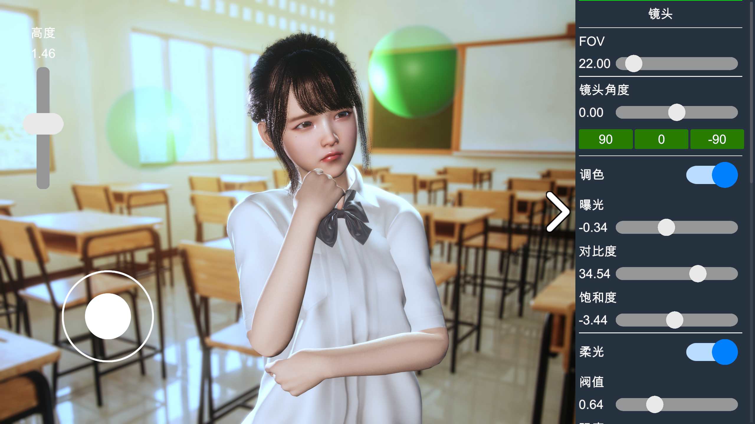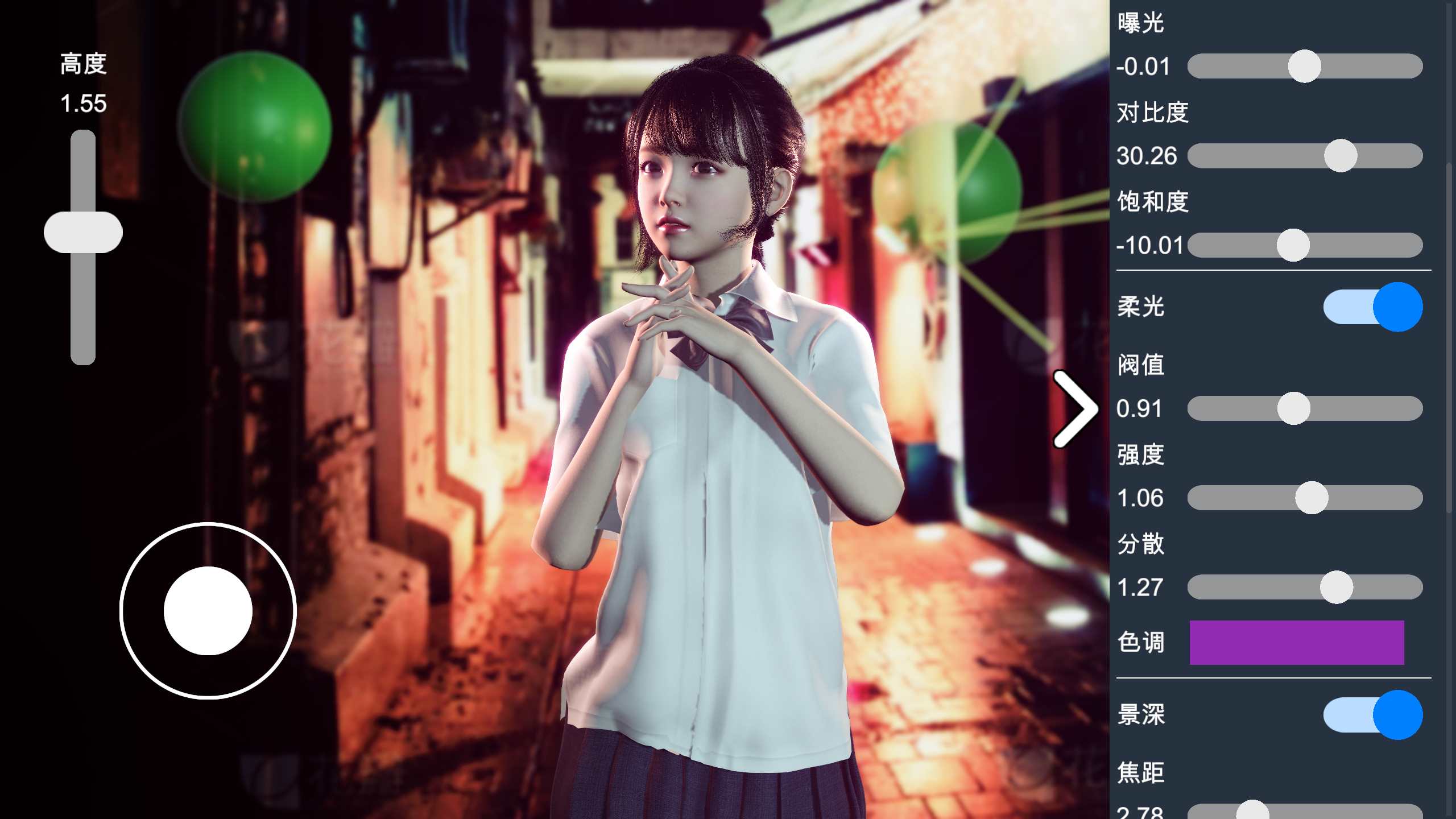 《摄影师模拟》可以通过灯光布置及调整,对镜头角度及特效的应用,拍出很多非常漂亮的人像作品。 使用过程中将有效的提升对灯光镜头的应用及其对人像摄影的理解,并且在以后的实操过程中得到很大帮助。 1.提供一个虚拟模特 柯雯 提供大量拍摄用动作和表情 2.提供三种灯光 点光源 聚光灯 平行光 3.提供多种镜头特效 包括镜头柔光 景深 色调等等... 4.提供多种拍摄用背景板 5.提供普清及高清拍摄出片 6.可以保存和读取布局的拍摄场景 闲来无事可以尝试一下自己是否有成为一名人像摄影大师潜质。