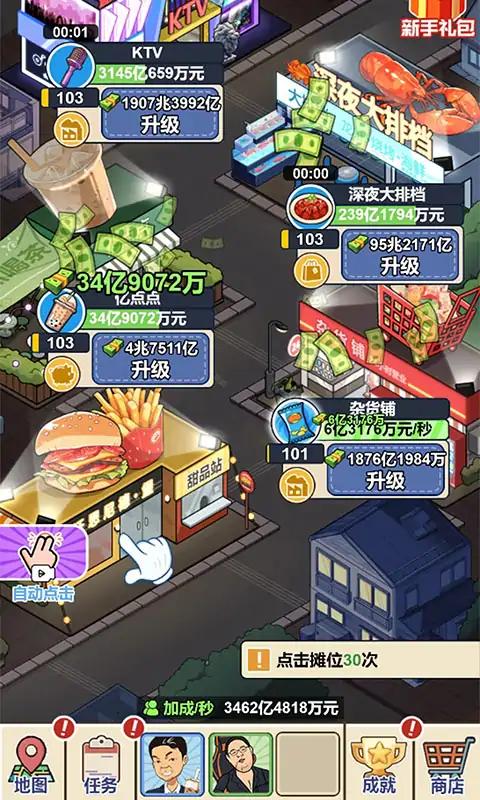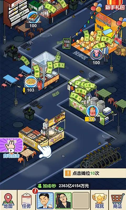 夜幕降临,商业斗争才刚刚开始,谁才能在夜市中脱颖而出,变成夜市里最有钱的仔。从零开始赚钱,运用你的商业头脑,合理分配商业资源,通过升级、解锁夜市中的餐厅,打造一个属于你的商业帝国。不断点击商店快速赚取财富和金钱,从而成为夜市中的商业投资鬼才!