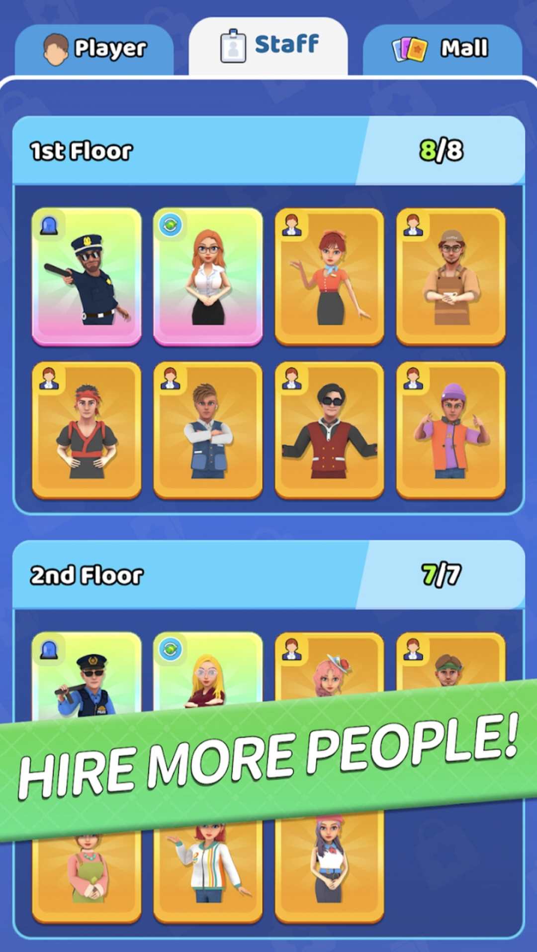 探索并拓展海量商铺,每层有十几种不同类型的商铺等你解锁,升级至臻完美。为顾客提供各种舒适的服务,通过解锁和升级以及管理员工,在每个商店中脱颖而出。在这个引人入胜的大亨游戏中证明您作为商场经理的能力,获得老板的信任,并准备好拿走他的财产!