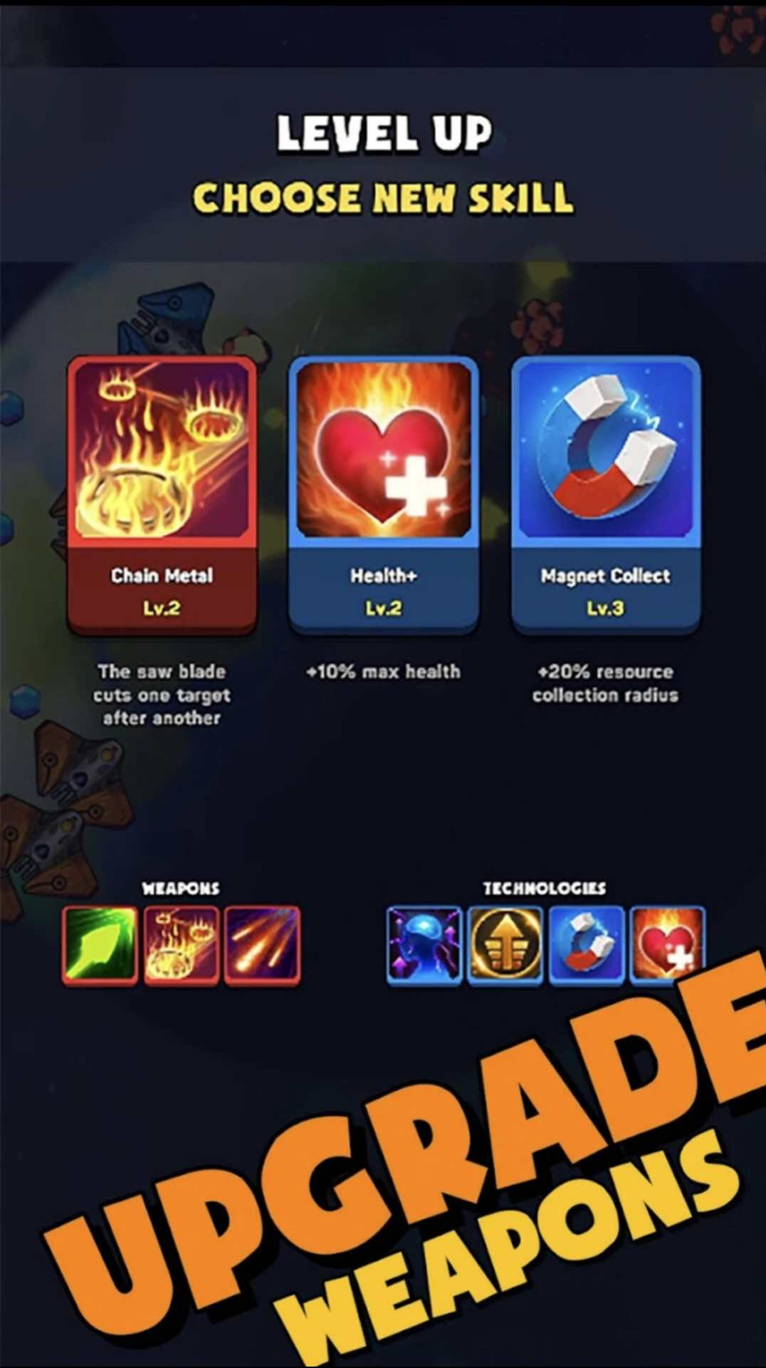 您是生存游戏或太空英雄游戏的粉丝吗?从一个完全菜鸟到一个战士,一艘更强大的巨型飞船,结合最好的技能来摧毁敌人,成为征服者!您可以创建数千种独特的技能组合来克服挑战并在敌人的每一波攻击中幸存下来。