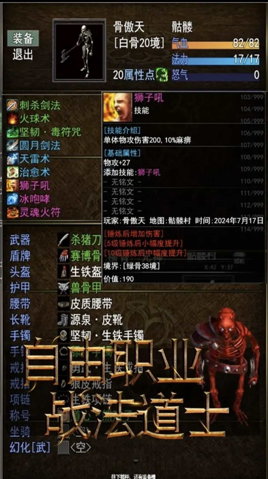玩家将扮演一名骷髅,在沃玛大陆中不断打怪,修炼横骨和元神!新的妖魄玩法,千奇百怪的装备,新颖的战法道三合一职业,等你来挑战!