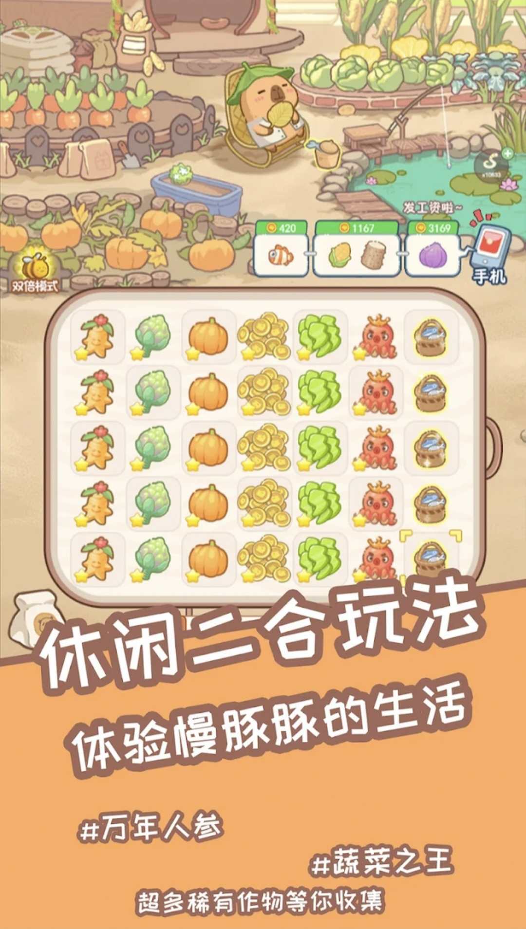 慢豚豚的生活是一款结合了合成玩法的模拟游戏,玩家扮演水豚,在都市和田园间体验慢吞吞的"豚系"生活,是在职场体验100种工作,还是回家种田远离城市喧嚣,一切随心所欲。加入豚门,不发脾气只发财