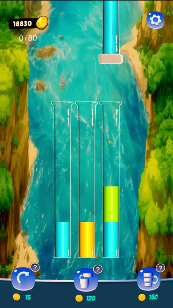 颜色消除 是一款休闲放松的倒水游戏,在游戏中你需要将水倒入杯子中,相同颜色的会被消除。