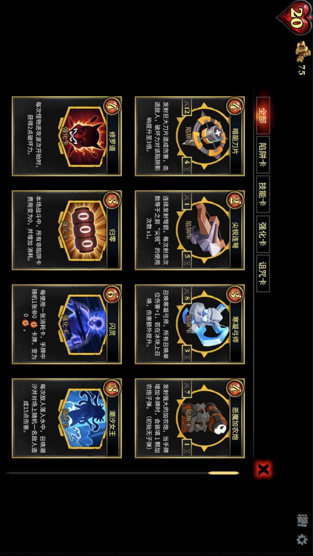 收集卡片以制作您选择的tao牌。从几张基本的陷阱卡开始,扩展到可以阻止不同地形中各种敌人的多功能牌组。超过 100 个陷阱和技能,找到强大的协同效应,并在战场上测试你的策略!