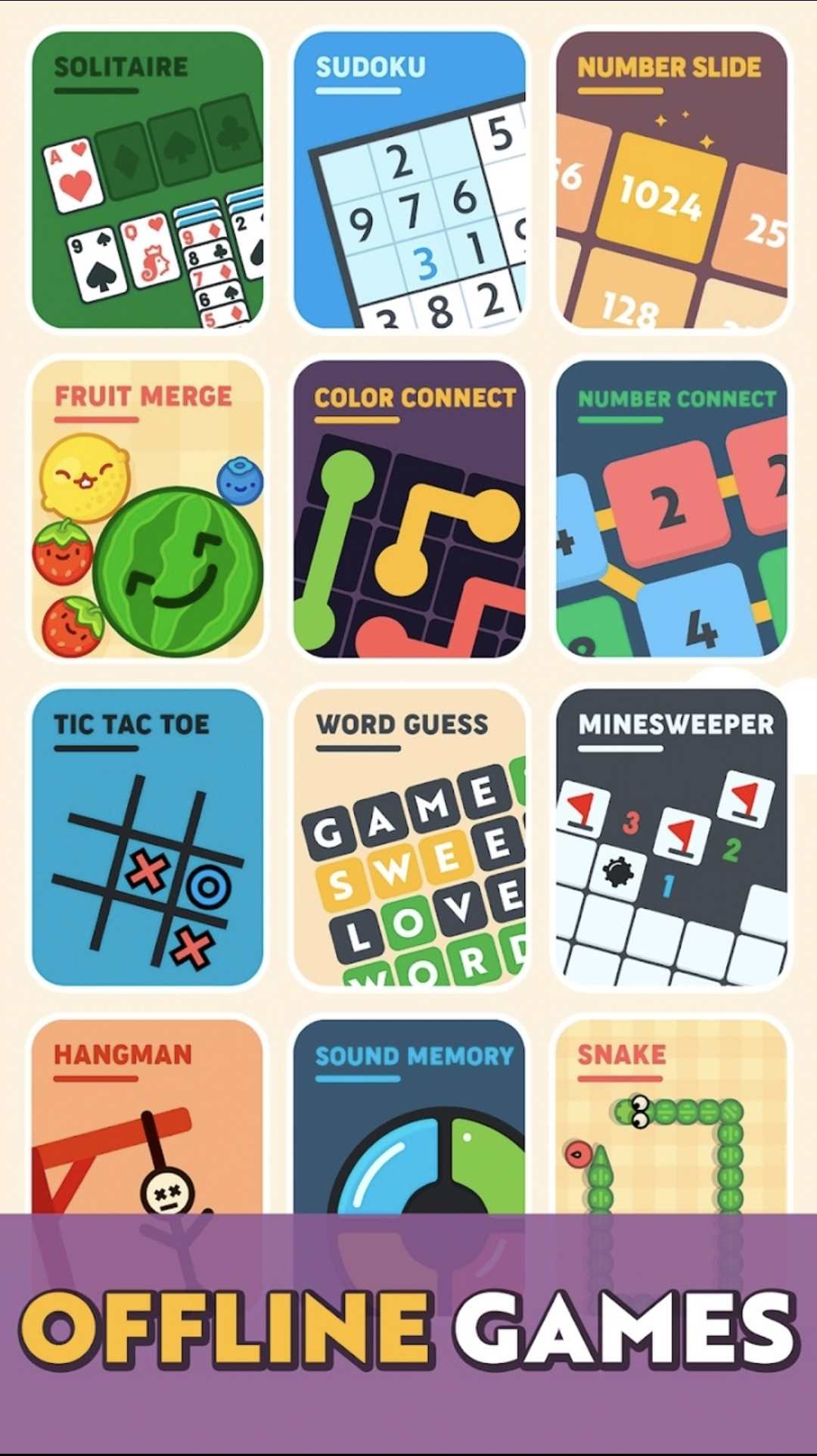 为“离线游戏”做好准备:适合所有年龄段的人,同时也是一种心理锻炼!这个离线游戏合集就像一个装满了 20 多个独特迷你游戏的玩具盒。它专为经典游戏爱好者、拼图爱好者和挑战寻求者而设计。最好的部分是?您不需要互联网连接即可享受它!