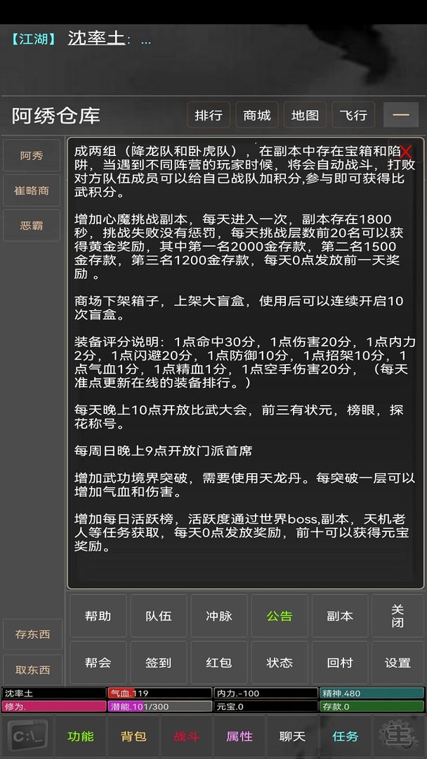 [5]《江湖岁月》未来会增加更多的玩法,比如帮会争夺地盘战、正邪决战、科举、跨服活动等等。
