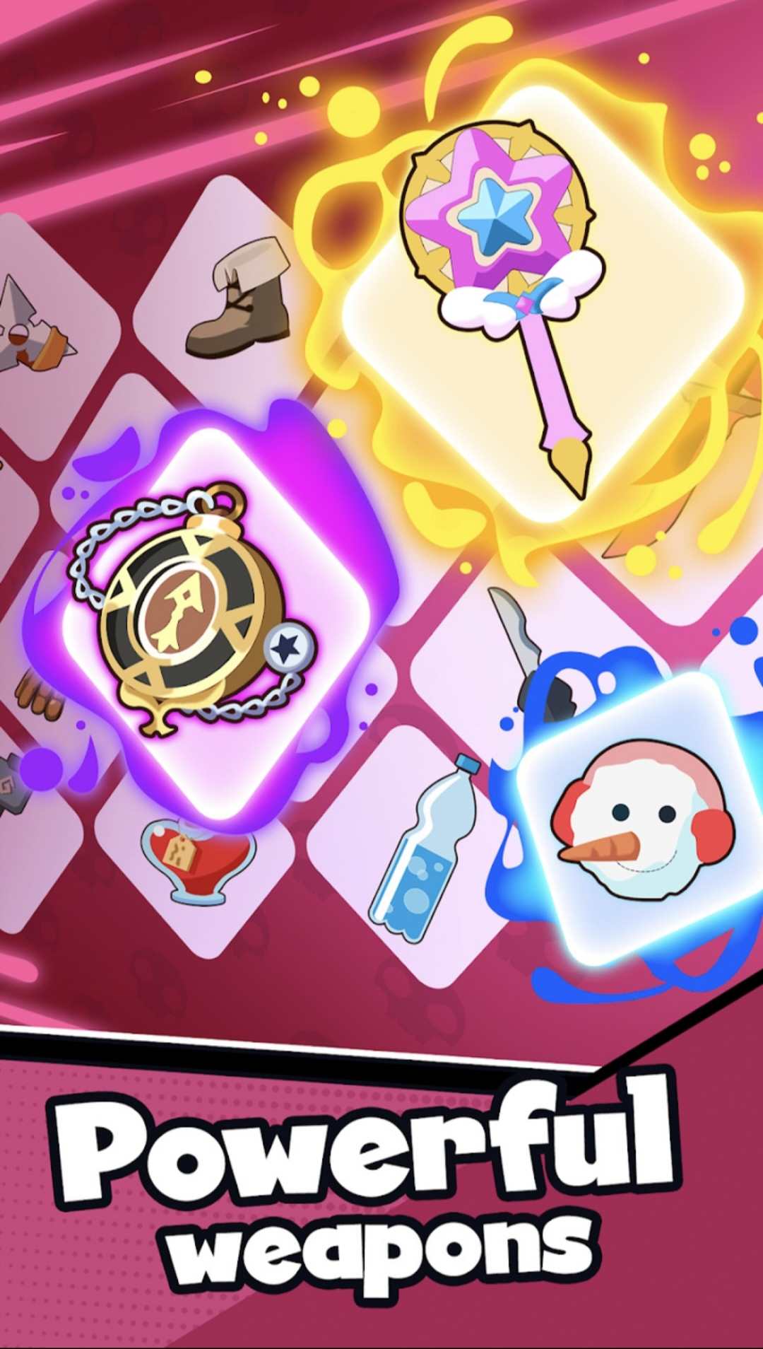 - 释放您的创造力和战略思维,将相同的武器合并到您的 背包 空间中,将它们进化成更强大的形式。