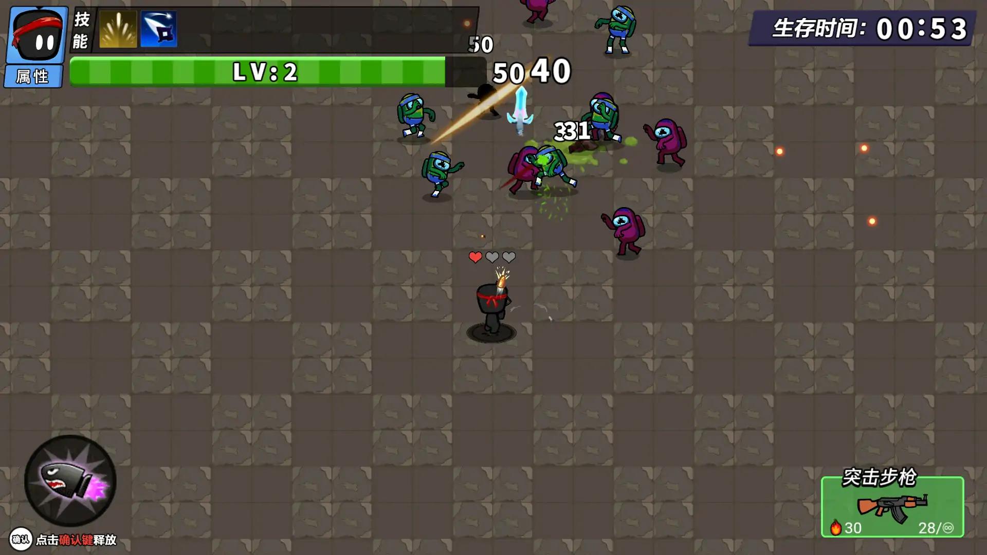 一款爽快的割草类游戏,在游戏中,玩家需要不停的打怪升级来获得多变的技能,并武装自己,和每一个BOSS进行决战!游戏更有多种属性的武器和角色,任你使用。快来一起挑战吧!