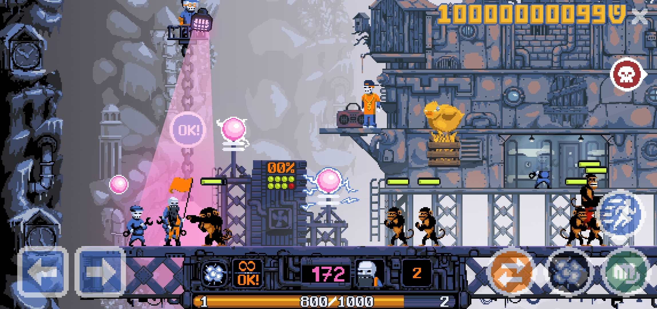 画出寒冷是一款地狱场景的街机游戏,游戏中,你将扮演弗拉基米尔的角色,并应雇主天启四骑士的要求,将城市从炼狱的深渊中拯救出来。 弗拉基米尔带领一群勇敢、真诚但有点倒霉的机械师们与猴子们展开战斗,同时一关一关往上爬,打败那些误入炼狱的Boss并交给地狱使者,这样它们就会被送到属于它们的地狱。 随着城市升级并提升弗拉基米尔及其战队的战斗力,你将揭开每个主要敌人的背景,看到弗拉基米尔的过去,并见到四骑士。他们在这个宇宙中既善良,又很有幽默感。 这款2D像素街机游戏让你能够随心所欲地在地图上左右奔跑,但这还不是全部!它还有其他更重要的特色。 以一种特殊的非暴力方法来收集小鸡和生产能量,用于升级城市和解锁技能。城市会给你配备NPC助手和战队队员,而技能会让弗拉基米尔击败对手的方式越来越酷炫,比如召唤一只粉红色的虫子来减慢你的敌人,然后用一把巨大的扳手完成毁灭性的打击。 每完成一个关卡都会获得弗币,可以用来升级弗拉基米尔的主动和被动技能,让他变得更强。 站在箱子里的的巨型鸡会赋予你新的技能——你越快通过升高城市摆脱无尽之井来赶上它们,你得到的奖励就越多。 一旦磁铁能量充满,你就可以召唤天启四骑士为你而战,他们还会赐予你骑士礼物,这是Boss特殊奖励。 画出寒冷充满着我们丰富的想象力。祝你玩得开心,注意升级城市的时候要放轻松哦!