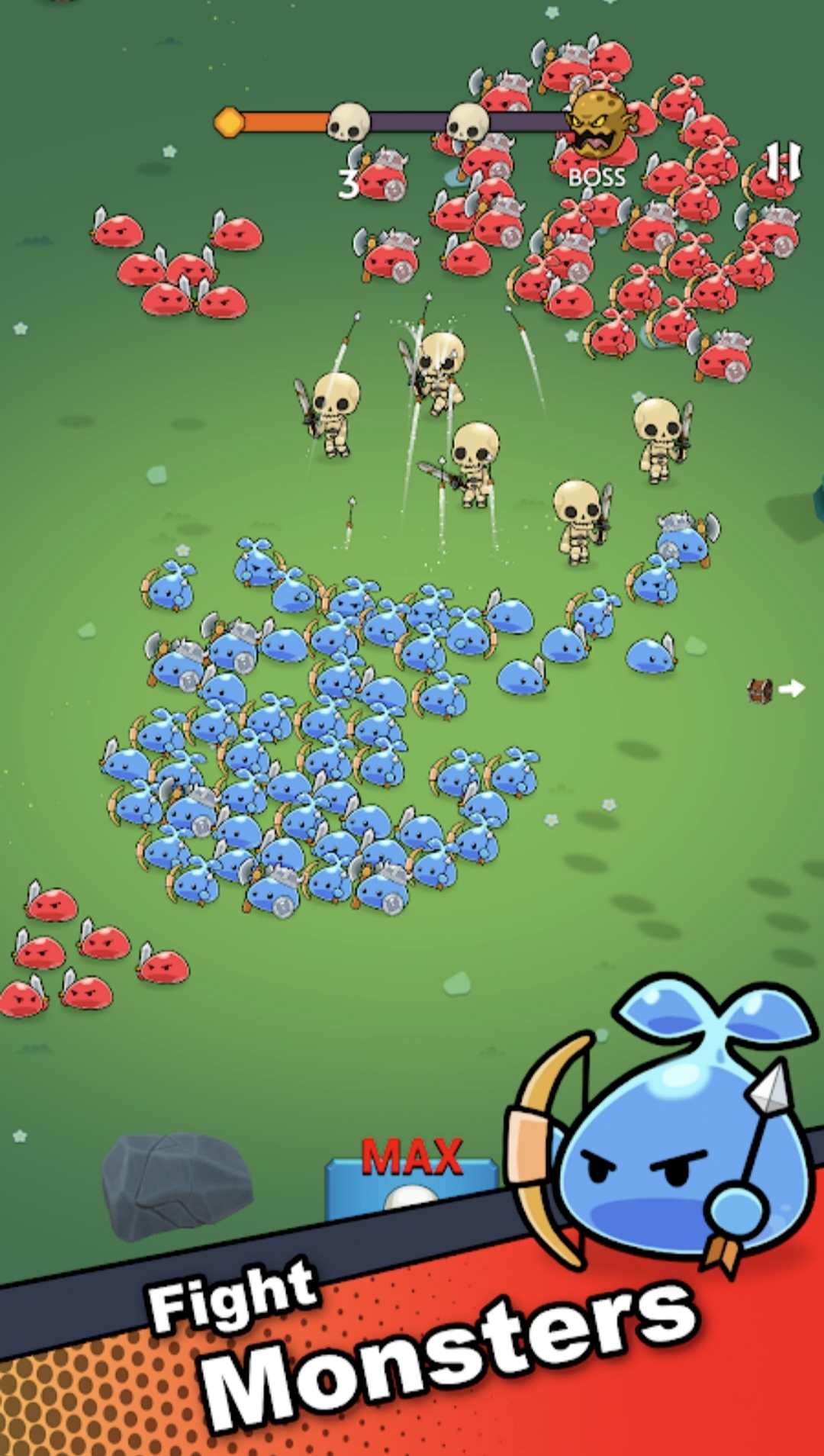 升级你的部落:在每场战斗中增加你的史莱姆数量并增强他们的属性,使你的部落势不可挡。