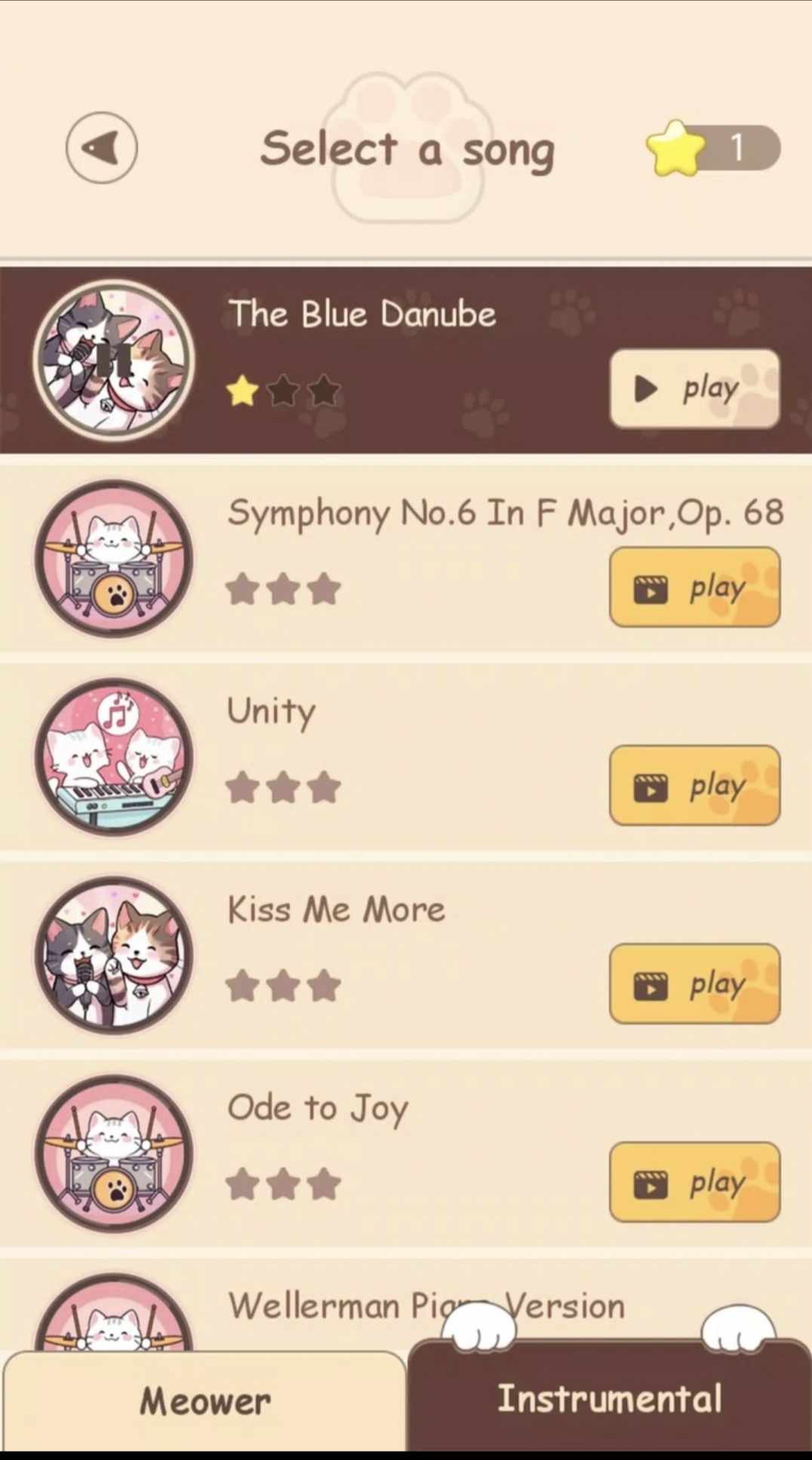 喵喵喵~打开游戏欣赏歌手猫的作品,跟着节奏闯大肚关收获金币和星星。听,这是响亮的呼噜声!