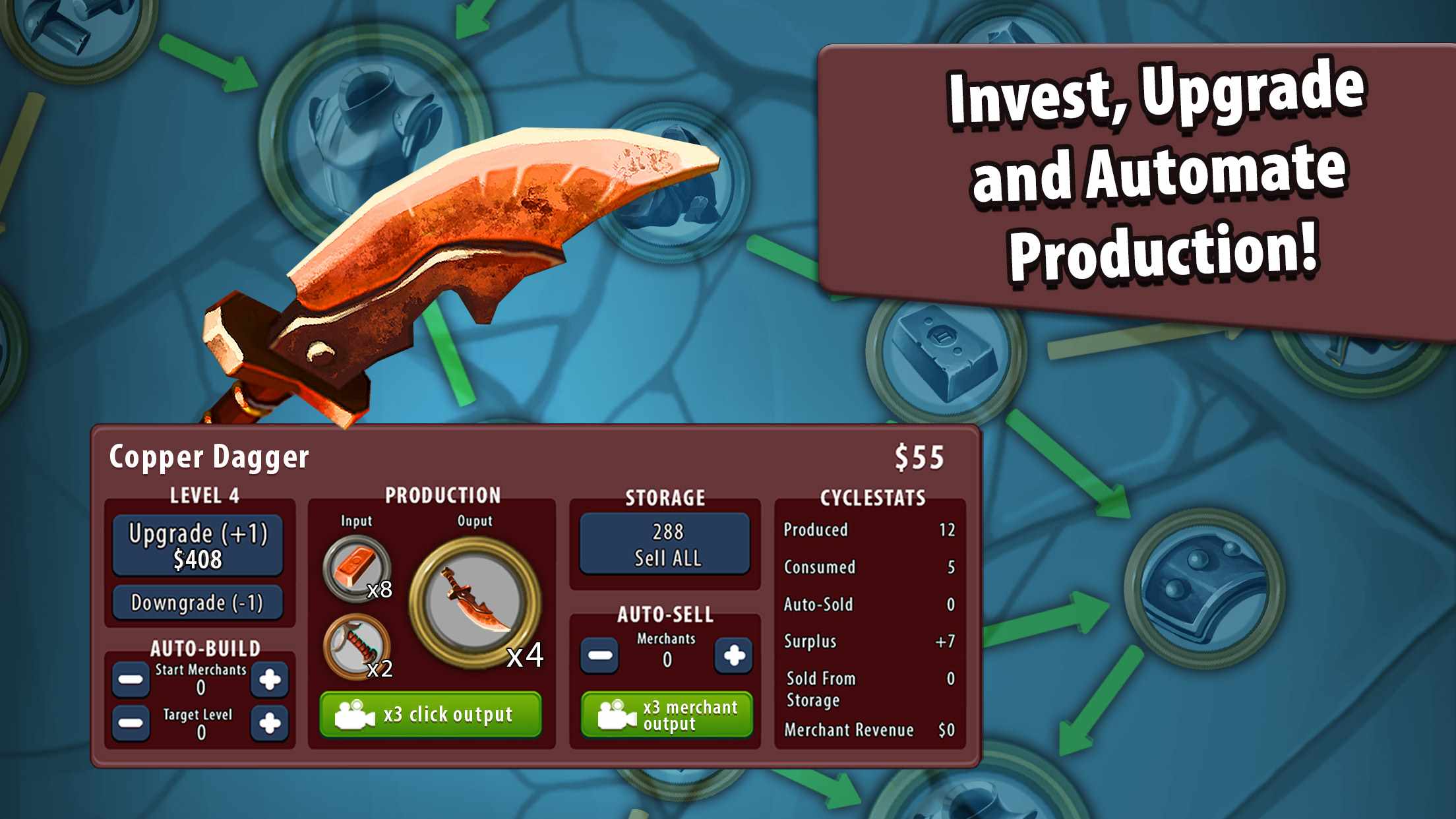 ★ 开采和收获资源以制作产品和商品。 ★ 建造从基本材料到传奇物品的任何东西。 ★ 自动出售您的商品并升级您的制作单元。 ★ 解锁500多项成就并提升级别。 ★ 收集新蓝图以在您的工作室中解锁它们。 建造、投资和研究! ★ 升级和进化蓝图!增加收入以获得固定奖金。 ★ 投资于进一步升级、新产品或研究。 ★ 完成任务以获得永久的声望奖励。 自定义您的工作室! ★ 随心所欲地组织研讨会。只需在产品周围拖动即可。 ★ 参加具有独特内容和奖励的定期活动研讨会。 ★ 建造拥有超过物品并不断计数的巨大生产线。 制作空闲答题器支持多种游戏风格: ★主动:点击您的产品以加快制作速度. ★被动:让游戏运行,同时自动赚钱并投资利润. ★关闭:在应用程序关闭时制作继续。不时发出新订单. ★离线:大多数功能无需互联网连接即可使用.