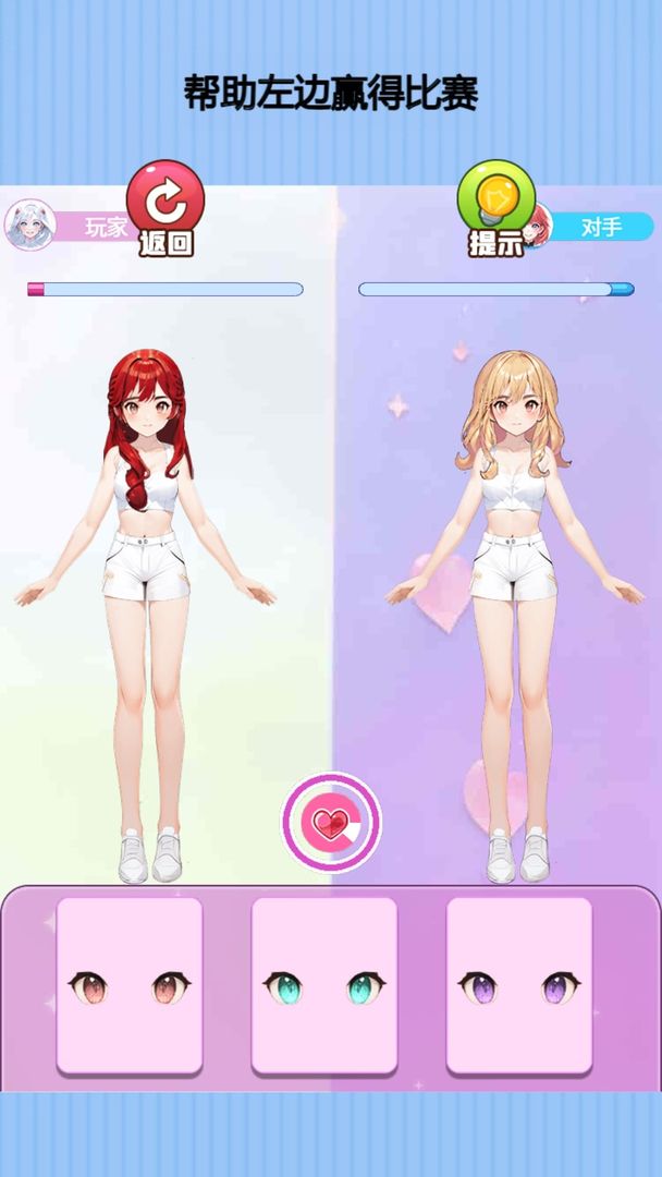 这是一款2D休闲益智游戏,游戏中你需要点击屏幕控制角色的装扮,玩家将在规定的时间内在三个选择中选出漂亮的衣服,而通过玩家的装扮,可以大大提升角色的装扮值,当玩家的装扮值大于对手时,自己便会获得游戏胜利,尝试各种不同的装扮来成功获得比赛的胜利,让我们一起来体验一下吧!