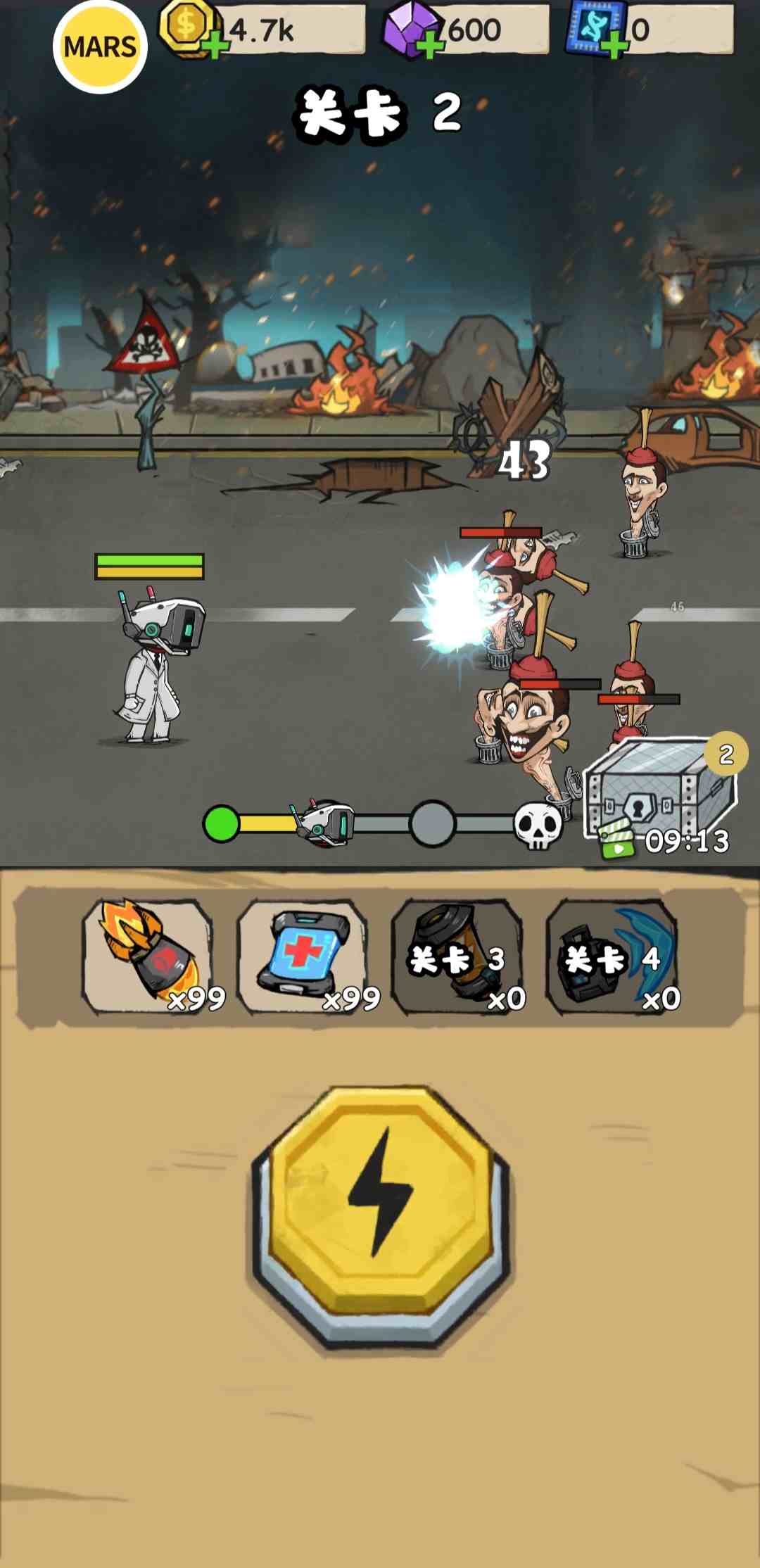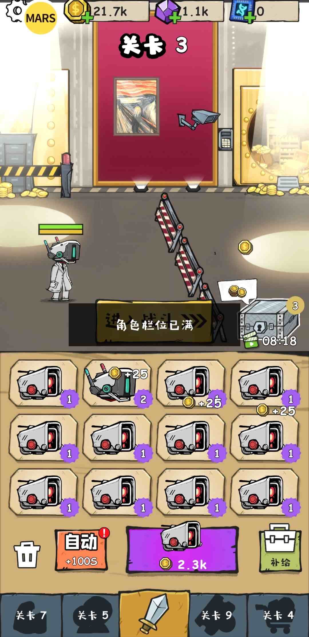 想体验惊险的射击游戏吗?在监控人冲突这个射击动作游戏里,合成并组建你的英雄战队,在激烈的战场中求生! 无论你是想合成收集武器还是想参与惊心动魄的射击动作,监控人冲突都可以满足你的需求!你可以合成使用强大的武器技能与主角和他的团队朋友们一起对抗怪物。 在游戏进行中请时刻保持警惕!除了可怕的敌人以外,还有很多拥有独特能力的怪物来给你带来各种挑战!快来参与惊心动魄的射击动作,结合使用技能和你的战斗策略智慧来战胜敌人,拯救人类&陷入困境的受控少女! 游戏特色 简单又易上瘾的游戏玩法:横版射击游戏让玩家感受游戏的乐趣! 多种角色,多种攻击方式:游戏提供多种可选择的角色,每个角色都拥有不同的攻击方式和特殊能力,增加了游戏的多样性和策略性。 一键爽快射击,自动击杀敌人获取收入: 游戏采用一键射击机制,让玩家能够轻松地进行爽快的射击,而无需担心弹药不足的问题。同时游戏还具备自动击杀敌人的功能,从而玩家可以自动获取收入,减少了繁琐的敌人清除任务。 离线持续击杀赚取资源: 即使离线,游戏也允许玩家继续进行敌人击杀和资源获取,增加了游戏的可玩性和收益。 每日登录完成任务&拯救被控制的美女人质获得丰富奖励: 游戏鼓励玩家每日登录并完成任务,其中包含了拯救美女人质的任务。成功完成任务将给玩家带来丰厚的奖励! 游戏玩法 使用金币购买萝莉英雄战士 拖动相同的战士合并升级 自动挂机获取收益 通过关卡,击退怪物敌人 自动攻击,长按按钮攻击加速 在监控人冲突中体验惊险刺激的射击游戏!