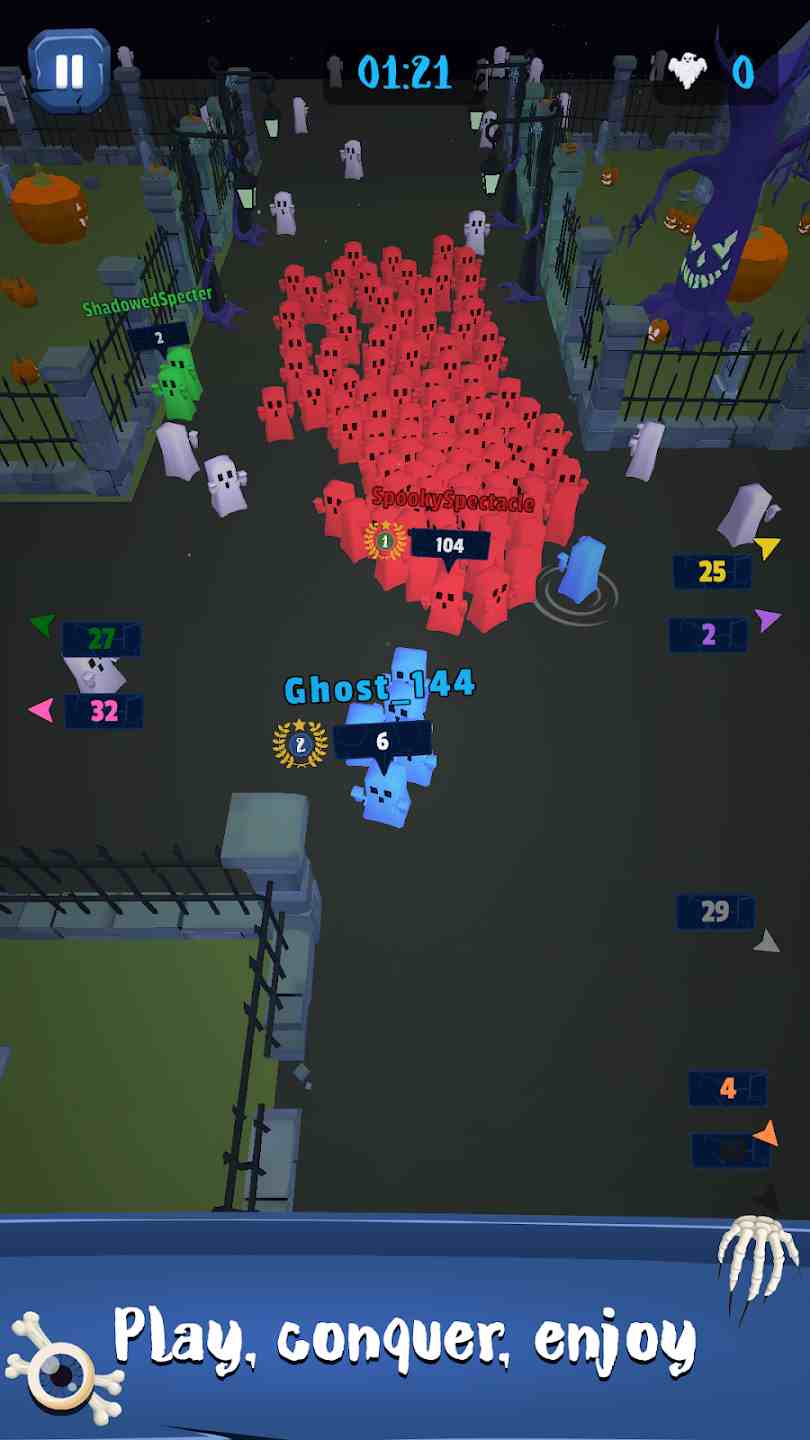 在这款快节奏的街机游戏中体验控制最大的幽灵人群的快感,您可以在其中合并、聚集和粉碎对手,以壮大您的军队,成为城市的不可阻挡的主人。凭借令人惊叹的 3D 环境和令人满意的游戏玩法,解锁新的皮肤和头像以定制您的体验。通过战略领导和防御,带领你的b徒取得胜利,与敌人作战,成为最终的冠军。单人游戏或在多人离线模式中挑战朋友。您准备好将人群鬼城冠军的头衔收入囊中了吗? 在这款令人满意的街机游戏中,带领势不可挡的幽灵人群穿越真正的离线人工智能城市景观。粉碎对手,解锁皮肤,成为多人离线战斗中的终极冠军。发现新的环境并召集人们来主持节目!