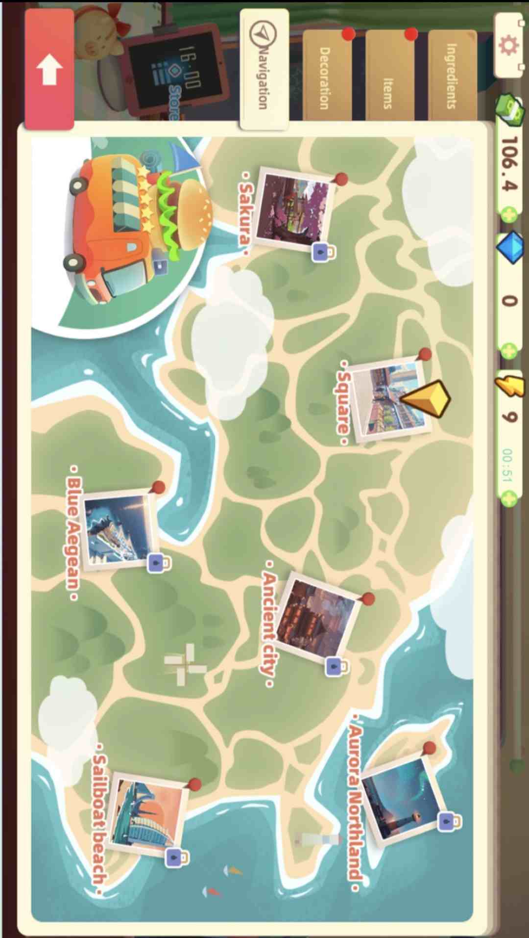 - **风景区**:在著名地标设立美食摊位,吸引游客,赚取金币,升级美食车。