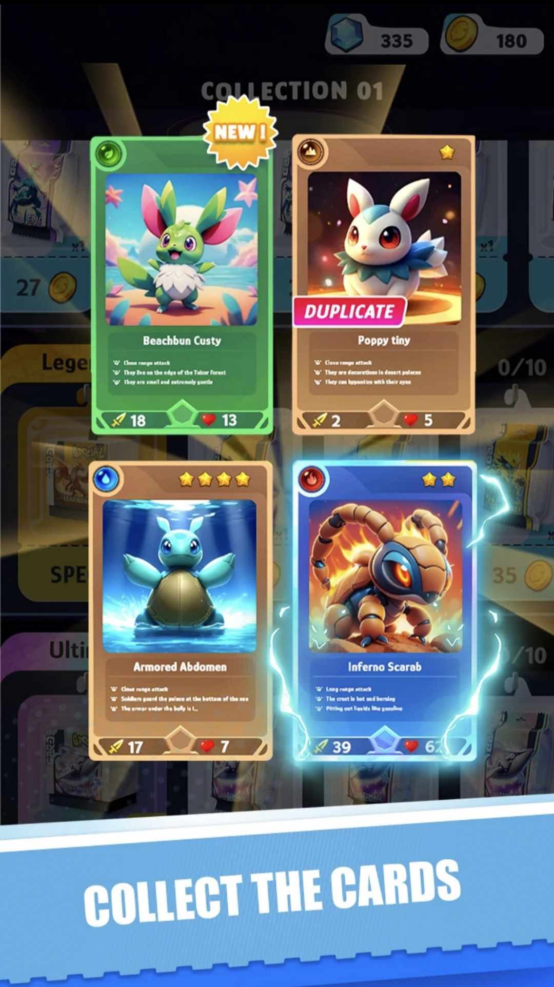 - 决斗竞技场:踏入竞技场进行激动人心的卡牌决斗,在这里,策略和正确的卡组将在视觉震撼的战斗中取得胜利。