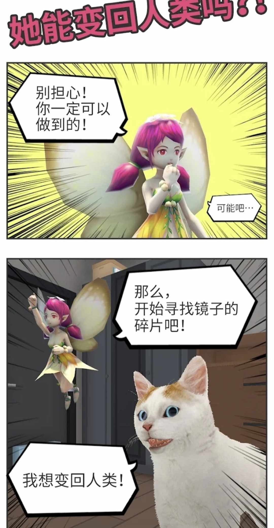 在一个阳光明媚的日子,城里的风云人物,也是本故事的主人公美咲,回到她的房间时,发现地板上有一面神秘的镜子。这面镜子是一个仙女在飞行时掉下来的。美咲看到镜子的瞬间,竟然变成了一只猫!镜子破碎成几块,散落在房间里。不久之后,仙女来到了美咲的家并与她见面。仙女告诉美咲,只要收集所有破碎的镜子碎片并修复它,她就能恢复人类身份。于是,她以猫的身份展开了寻找镜子碎片和解开谜题的冒险。