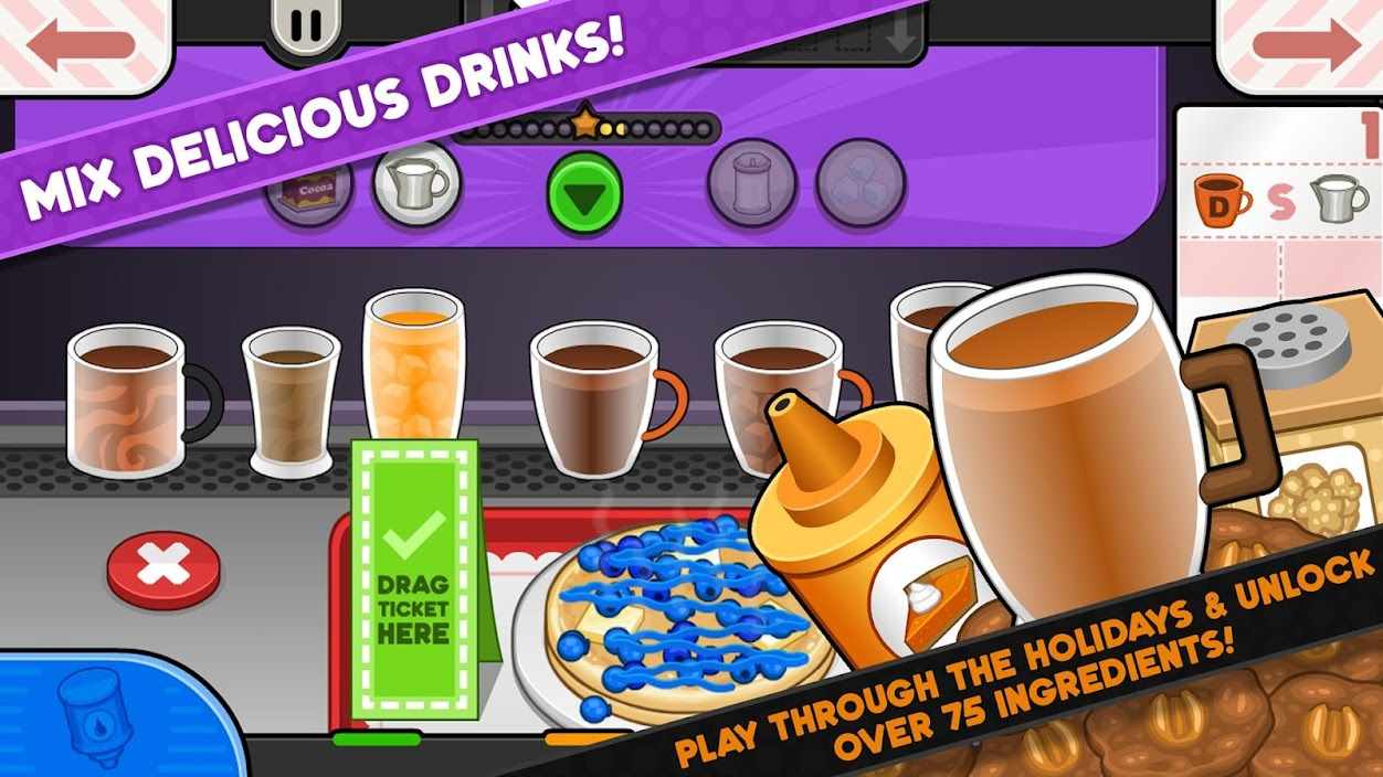 在寻找丢失的宠物时,你突然接到Papa Louie的电话,带来一些好消息:你的宠物被发现在餐厅,因为你的宠物非常喜欢这家餐厅,所以Papa Louie决定让你经营直到他离开的时候! 您将忙于多任务处理,因为您的客户可以在一年中的所有季节订购蓬松的煎饼,金色华夫饼,温暖的法式吐司和美味的饮料。将面糊倒在烤盘上,向面糊中加入可混合物,然后继续检查,将烙饼翻到一半。用薄煎饼,糖浆和浇头堆放他们的盘子,每个假期都会随之变化。加一杯热咖啡或一杯清爽的果汁来完成早餐,并为饥饿的顾客提供食物。客户也可以通过电话下订单,所以雇一名司机就可以在他们家门口享用热腾腾的早餐! - 游戏特色 - 新功能 - 来自其他版本的Papa餐厅的所有最喜欢的功能现在都可以在这个“To Go”游戏中使用,重新设计并重新设想用于小屏幕! 假日风味 - 以新的节日风味庆祝季节!随着枫树山谷的季节变化,您的顾客将用新的时令食材订购煎饼,华夫饼和法式烤面包。您将为一年中的每个假期解锁新的糖浆,浇头和饮料,您的客户将喜欢尝试新口味的节日早餐。 提供特殊食谱 - 从您的客户那里获得特殊食谱,并将其作为每日特色食品!每个特别食物都有一个奖金,你可以通过提供该食谱的主要例子获得。掌握每个特殊奖项以获得特别奖品! 自定义你的工人和宠物 - 或者和你自己的宠物一起创造你自己的自定义角色!您还可以为您的工作人员提供各种各样的假日服装和服装,以展示您的节日精神。为每件衣服选择独特的颜色组合,并创建自己的风格与数百万组合! 特别送货 - 当您开始接听电话订单时,客户可以打电话来下订单,然后您将雇用司机帮助您接受订单并将订单送到家中! 收集贴纸 - 在玩游戏时完成各种任务和成就,为您的收藏品赢取彩色贴纸。每个顾客都有一套三个最喜欢的贴纸:赚三个,你将获得一个全新的服装给予该客户! 装饰店 - 为一年中的每个假期定制大堂,配有主题家具和装饰品!混合搭配您喜欢的款式,或添加与当前假期相匹配的商品,这样顾客就不会介意等待更长时间的食物。 剪报优惠券 - 错过了您最喜欢的顾客?在友好的邮递员的帮助下给他们发送优惠券!顾客喜欢很多,并会及时到达订购另一餐。优惠券非常适合完成贴纸任务和战略性升级客户! 每日迷你游戏 - 在每个工作日之后玩美食家着名的迷你游戏,为您的大厅和工人购买新衣服。 - 更多功能 - - Papa Louie宇宙中的动手煎饼店 - 为小屏幕设计的所有新控件和游戏功能 - 烹饪,建筑和提供饮料之间的多任务 - 定制厨师,司机和宠物! - 12个单独的假期解锁,每个都有更多的成分 - 赚取并掌握40种独特的特殊食谱 - 90个彩色贴纸,可完成任务 - 117个客户提供独特的订单服务 - 使用贴纸为您的客户解锁新服装 - 超过75种成分解锁