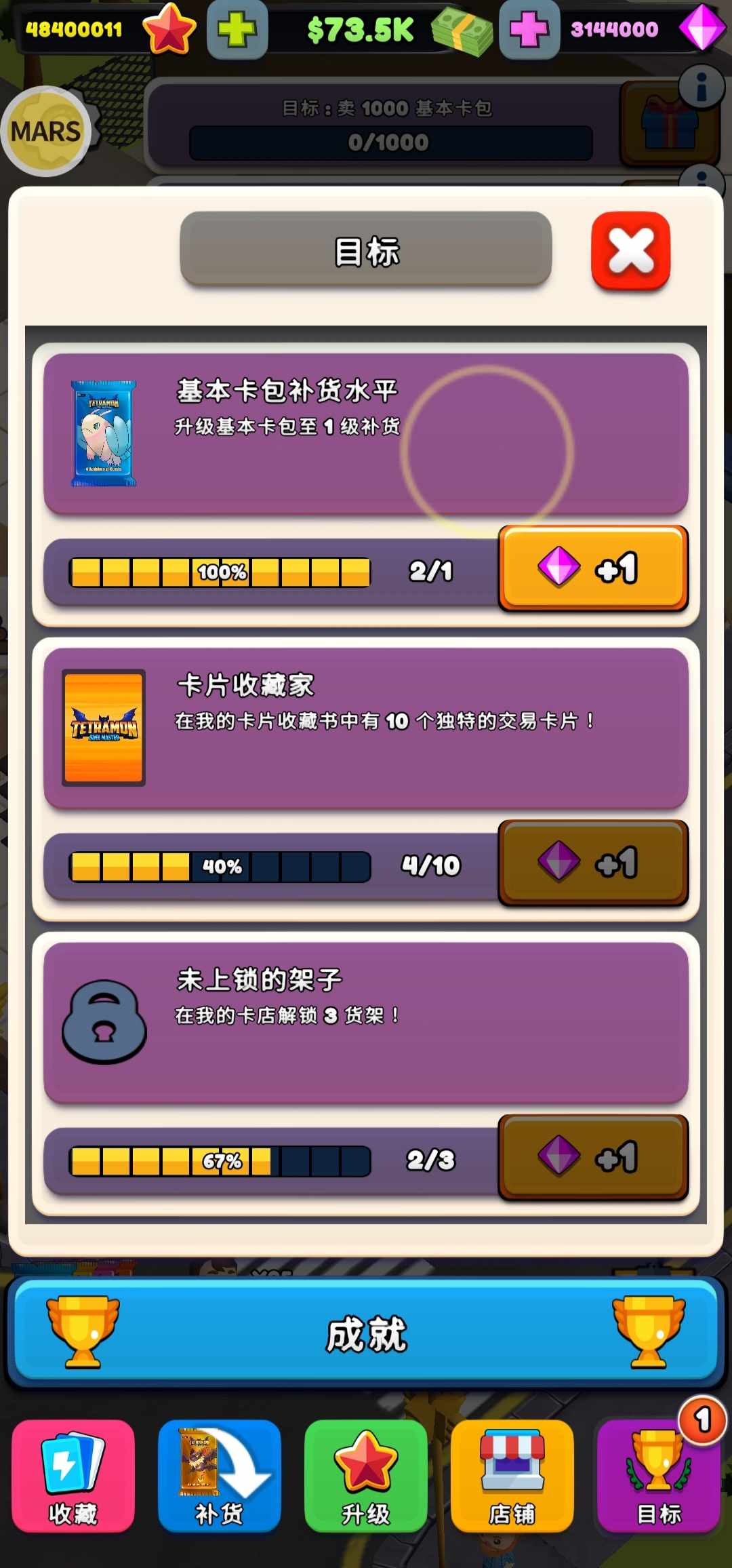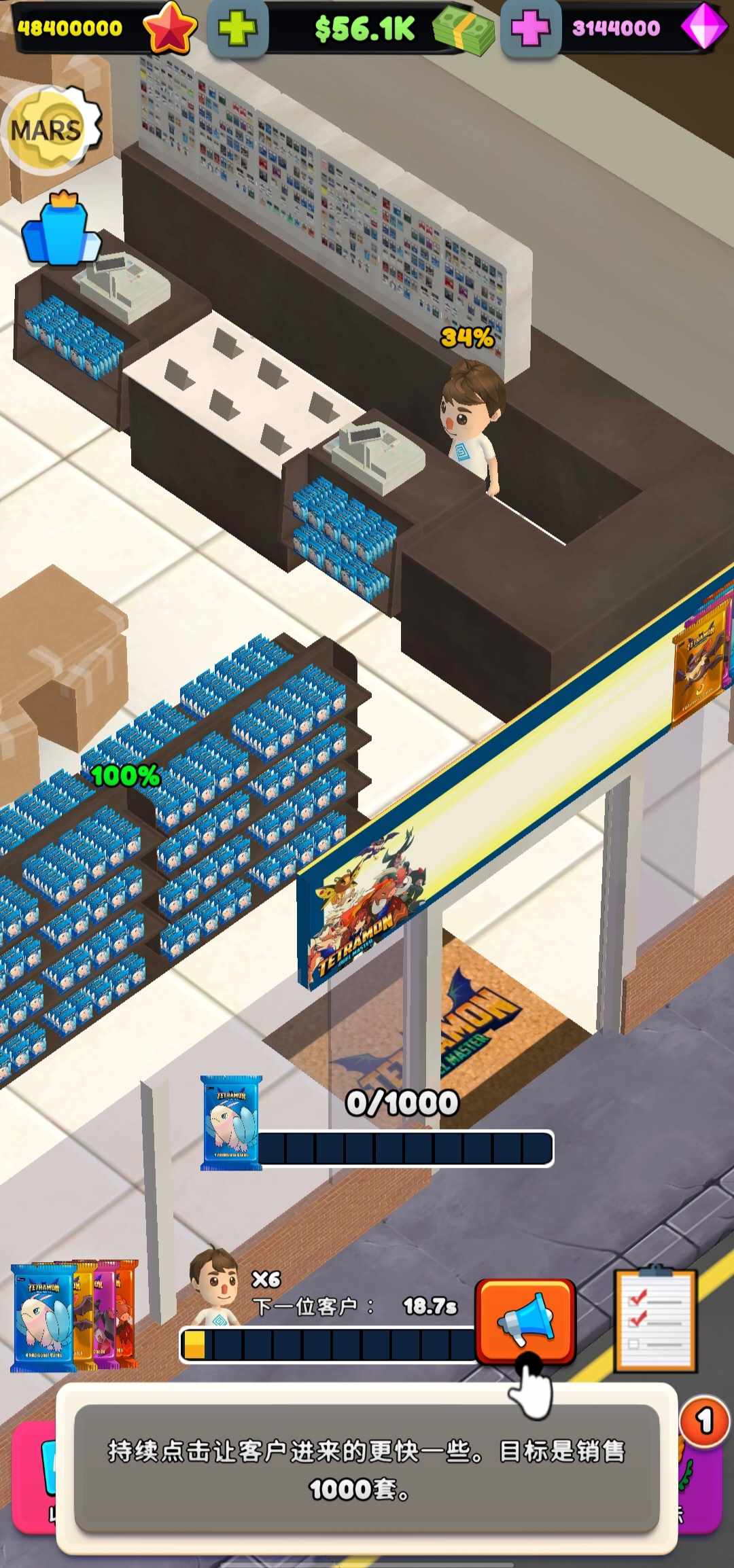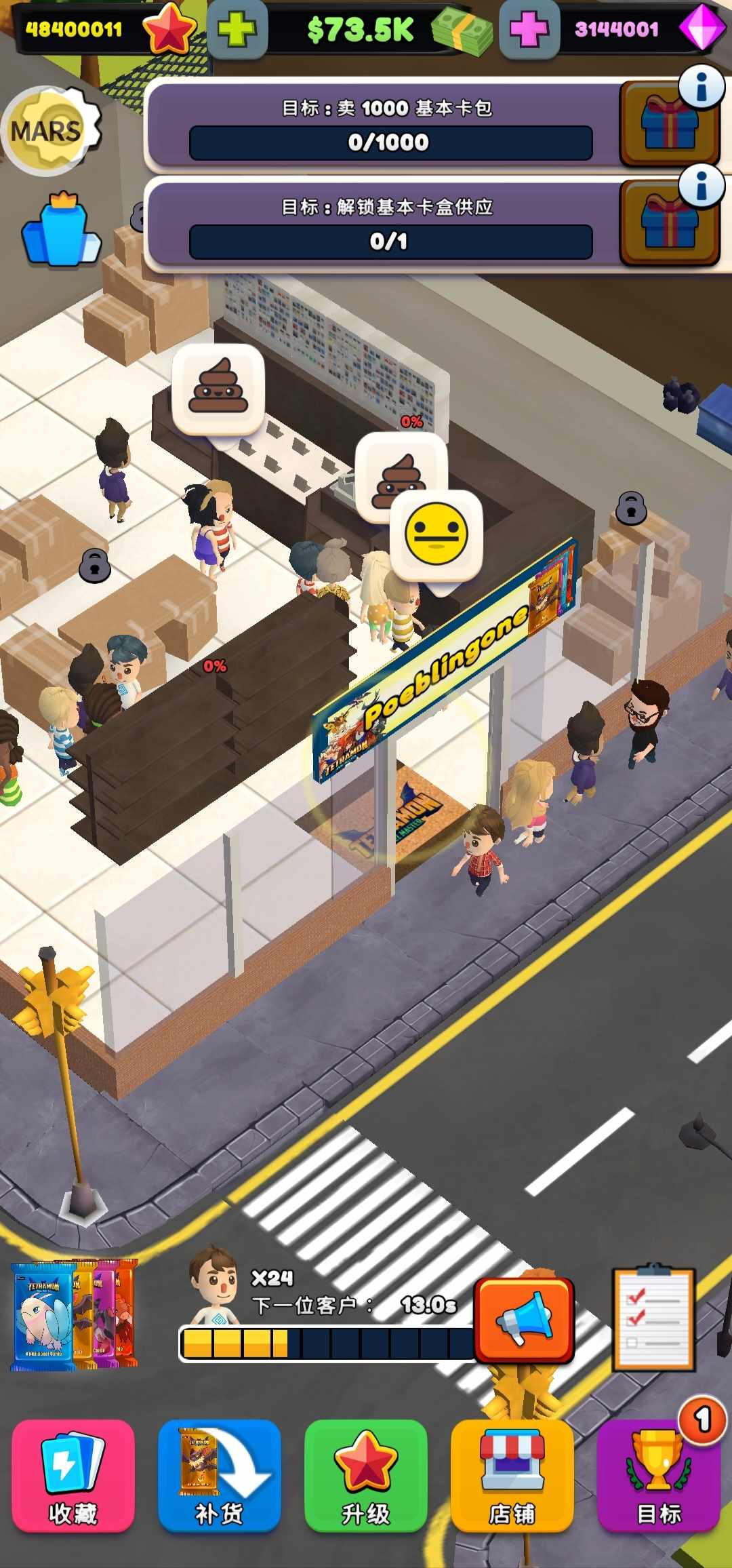 卡片收藏家!寻找交易卡店管理游戏来建立大型卡店业务? 你也喜欢在纸牌游戏中收集卡片吗? 你会喜欢纸牌店经理:商业和大亨游戏,你需要在其中扮演纸牌游戏店经理的角色,目标是成为交易卡店大亨和卡片收藏家。管理您的资产,购买合适的集换式卡牌游戏包,扩展和收集集换式卡牌,展现真正的 TCG 市场大亨的精神和技能。 来源和销售 购买第一包 TCG 卡并在这款闲置的大亨游戏中出售它们。明智地管理您的资金,以补充、升级、扩展和升级您的卡包。 建立卡店 从一个基本的机架开始,建立一个引以为豪的卡片店。您可以订购柜台和货架、创建商店名称、补货和收集卡片。升级你的商店,用这个商店建造游戏建造更多商店,成为顶级大亨! 服务客户 店铺一设好,顾客就会涌入。快速点击客户按钮以服务更多客户并通过销卡包获得更多收入。每售出 1000 包,您就可以打开您的怪物集换式卡牌并将它们添加到您的集换式卡牌收藏中!提供出色的客户体验,这样您就可以在这个闲置的街机中建立一个真正的卡店大亨帝国。 收集卡片相册 除了闲置管理的大游戏之外,我还想收集交易卡。这就是为什么我们创建了一个特殊的集合部分。在商店卡包,开卡,收集卡在自己的TCG收藏卡册中,收集超过550张独特的卡。 目标 检查商店纸牌游戏模拟器的目标和成就并获得更多奖励。从等级补充和货架解锁到卡片收集挑战和货架升级,这些有趣的挑战让在线大亨游戏更加有趣。 特点 管理交易卡商店 卡包库存/补货和销售 建立和升级您的商店 收集TCG之类的交易卡 快速点击以服务更多客户 完成目标以获得奖励 离线或外出时在后台运行的偶像商店经理模拟器 用于购买升级和功能的专用游戏商店