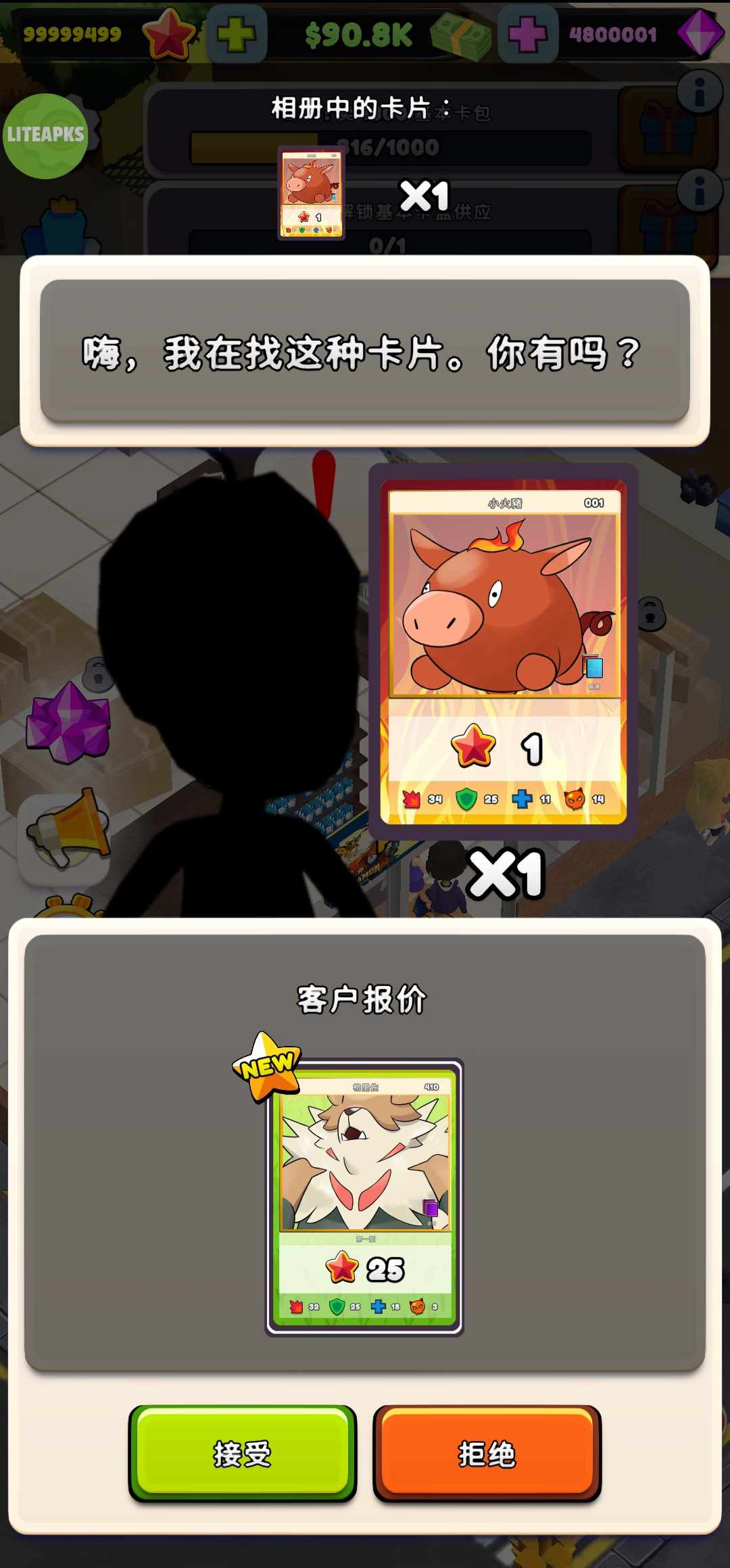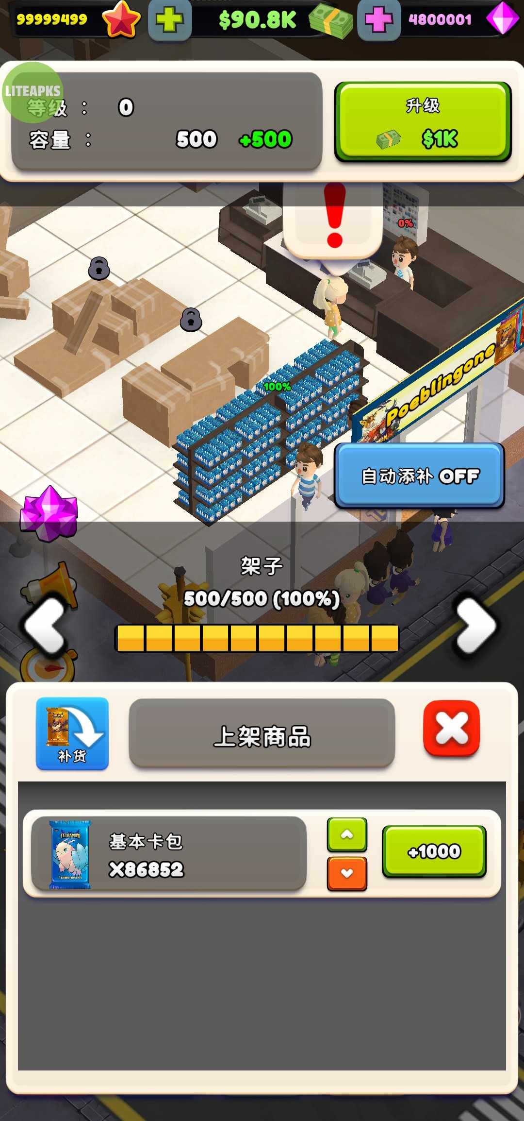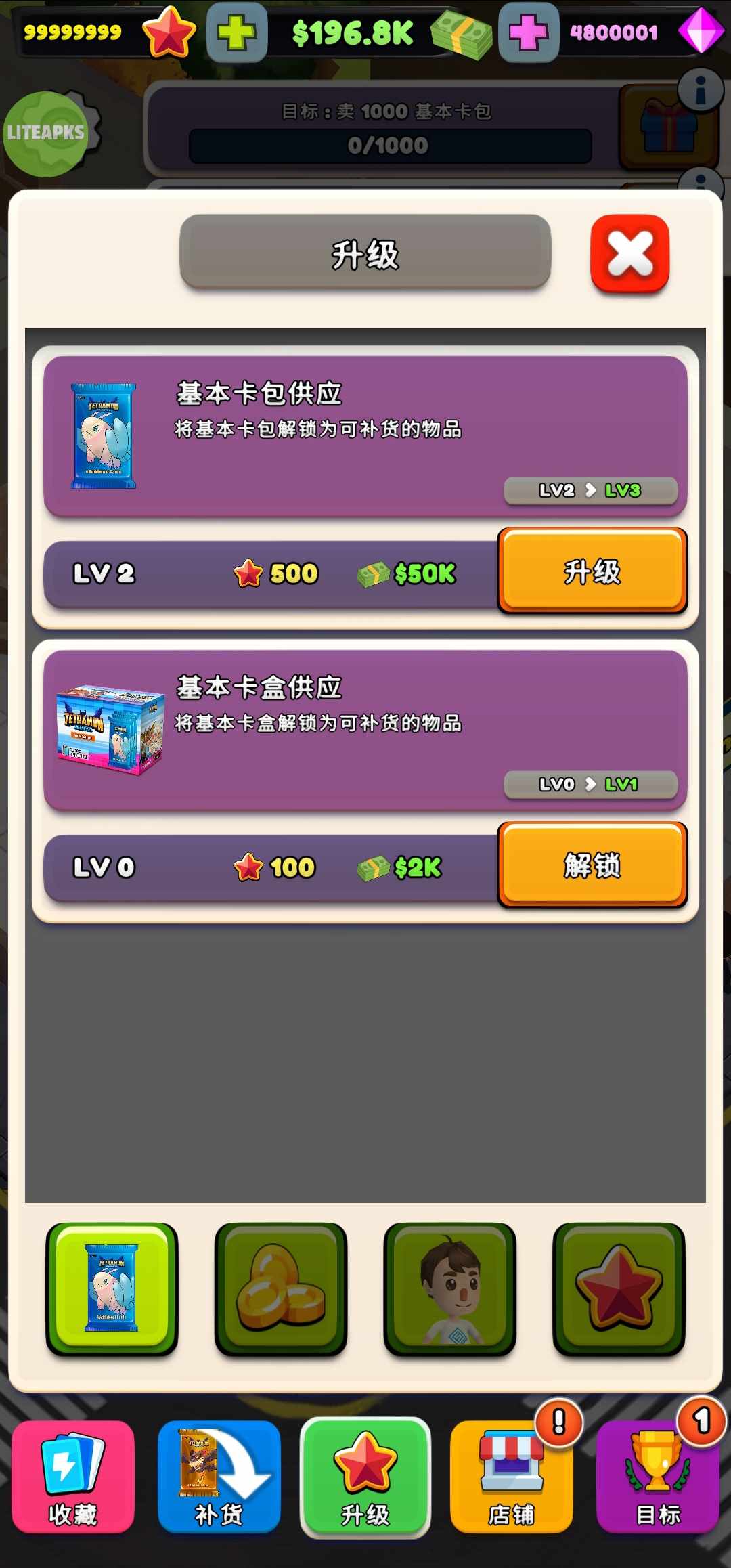 TCG卡牌商店模拟器2是交易卡店模拟器游戏的续集,您可以在其中赚钱并建立自己的卡店大亨业务。 以您喜欢的任何方式建造商店,升级您的卡牌商店,并作为卡牌收藏家收集稀有卡牌!从一家小型卡店开始,扩展到超级交易卡业务。购买收卡包,出售交易卡,成为富有的大亨。 采购和销售 购买您的第一包交易卡,并在这个闲置大亨模拟器游戏中出售它们。管理您的资金以进行库存,升级卡包并发展您的业务!做出重要的管理决策,以建立自己的帝国,并将您的小商店变成世界上最伟大的商店之一! 建立你的卡店 从基本的机架开始,建立一个引以为豪的卡店。订购柜台,货架,创建商店名称,补货,收集卡,等等!在此商店模拟器游戏中升级您的商店并补充更多卡包! 服务客户 如果你喜欢闲置和点击游戏,你会喜欢这款休闲卡店管理游戏。更快地点击客户按钮,为更多客户提供服务,并通过销卡包赚取更多收入。每售出 300 包,您就可以打开怪物卡并将其添加到您的卡牌收藏中!成为卡牌交易商,在此收集游戏中收集所有稀有卡牌。 目标 查看 TCG 商店模拟器目标和成就,以获得更多奖励。从补货级别和货架解锁,到卡牌收集挑战和货架升级,这些有趣的挑战将使我们的大亨收集游戏更加有趣! 功能 交易卡店模拟器游戏 休闲轻松的卡牌收藏 惊人的动画和 3D 图形 建立、升级和管理商店 收集所有交易卡牌,如 TCG 快速点击以服务更多客户 扩展您的卡店业务 专门的纸牌游戏商店购买升级 现在是时候玩一个有趣的大亨卡牌店模拟器游戏了! 免费下载TCG卡牌商店模拟器2!