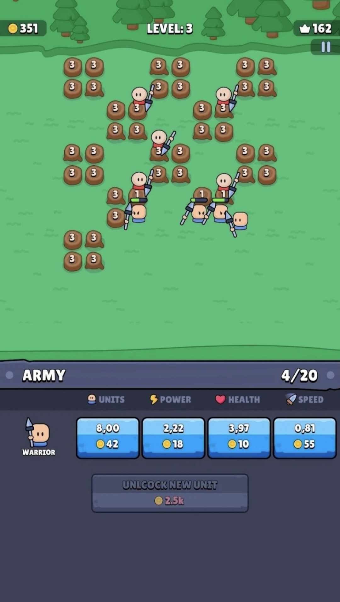 一款新的策略游戏,您必须通过为角色打气,购买更高效的战士,并在全局泵的帮助下发展每个人的特性来战斗,这些可以从一个级别保存到另一个级别。尽可能地通过关卡,尽管这并不容易,任何失败都将不得不重新开始旅程,但是为了获得游戏中的资源,您可以更好地准备和更强大地再次开始旅程,并且一定会打破您之前的记录