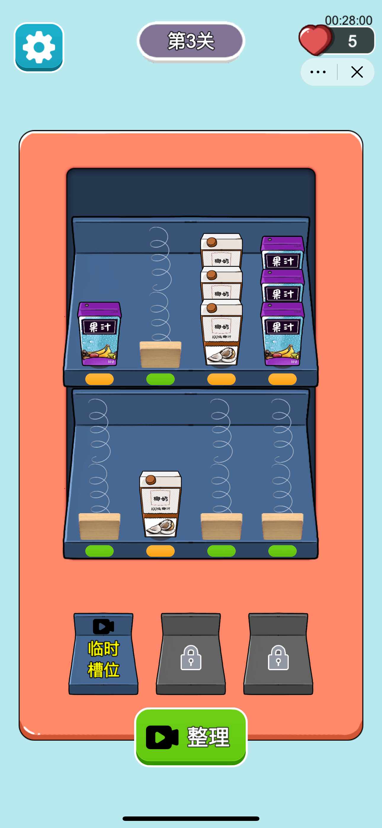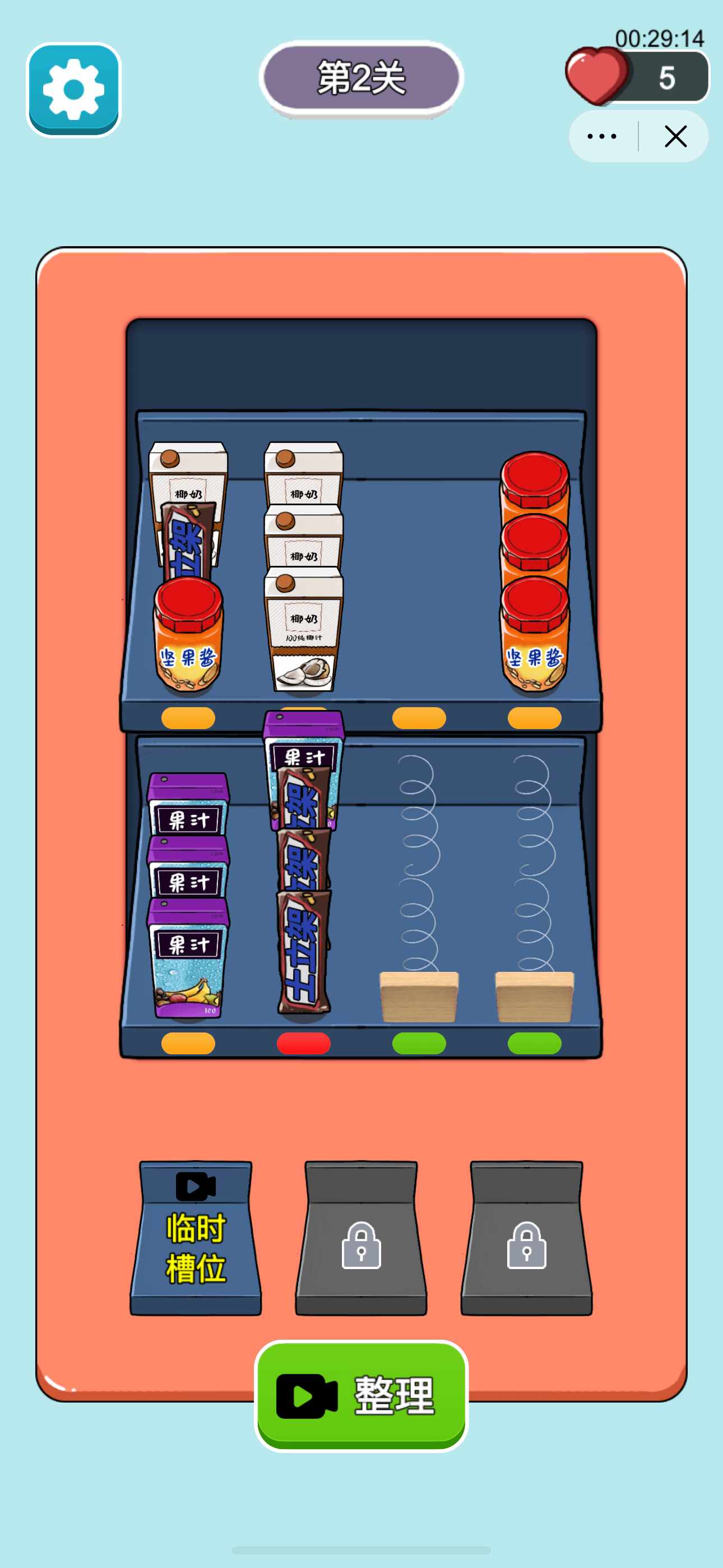 《解压高手》是一款超解压的排序三消类休闲小游戏。有两种玩法模式,关卡模式:收纳整理贩卖机中的商品进行分类,需要全部整理完成才算过关,该玩法也会随机出现趣味关卡;极限挑战模式:需要在特大规格的贩卖机中处理海量的商品排序,不断冲击最佳的过关时间。在排序整理的过程中,充分让你感受到治愈解压的快感!