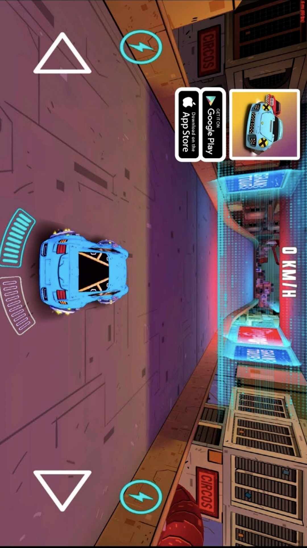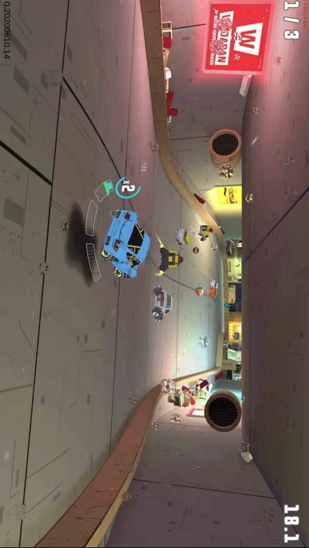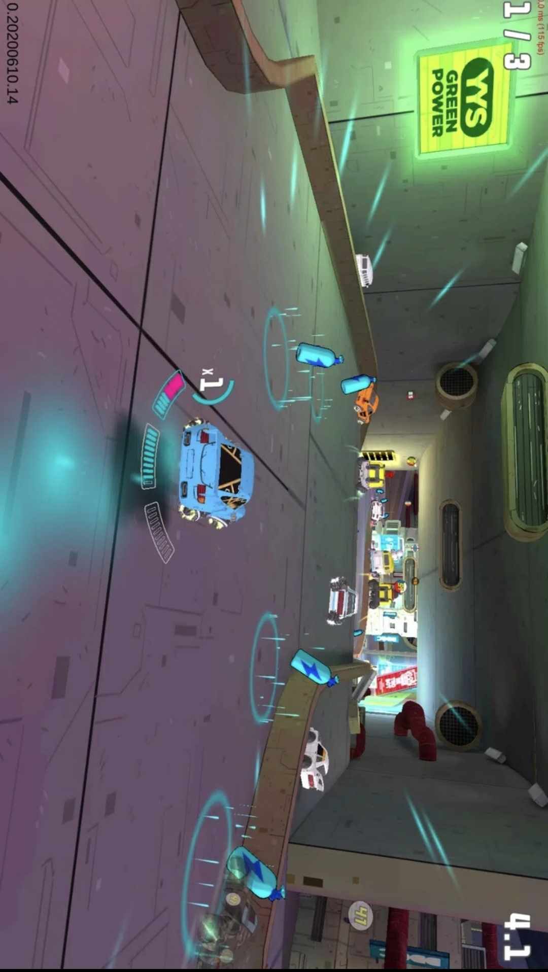 未来派悬停汽车在明天的网络城市与时间赛跑。多辆悬停汽车在同一城市赛道上比赛,不能相互碰撞或以其他方式影响。