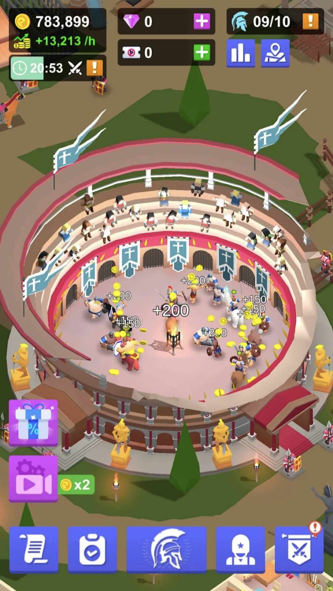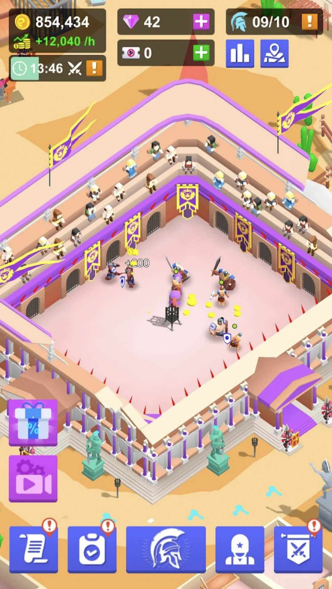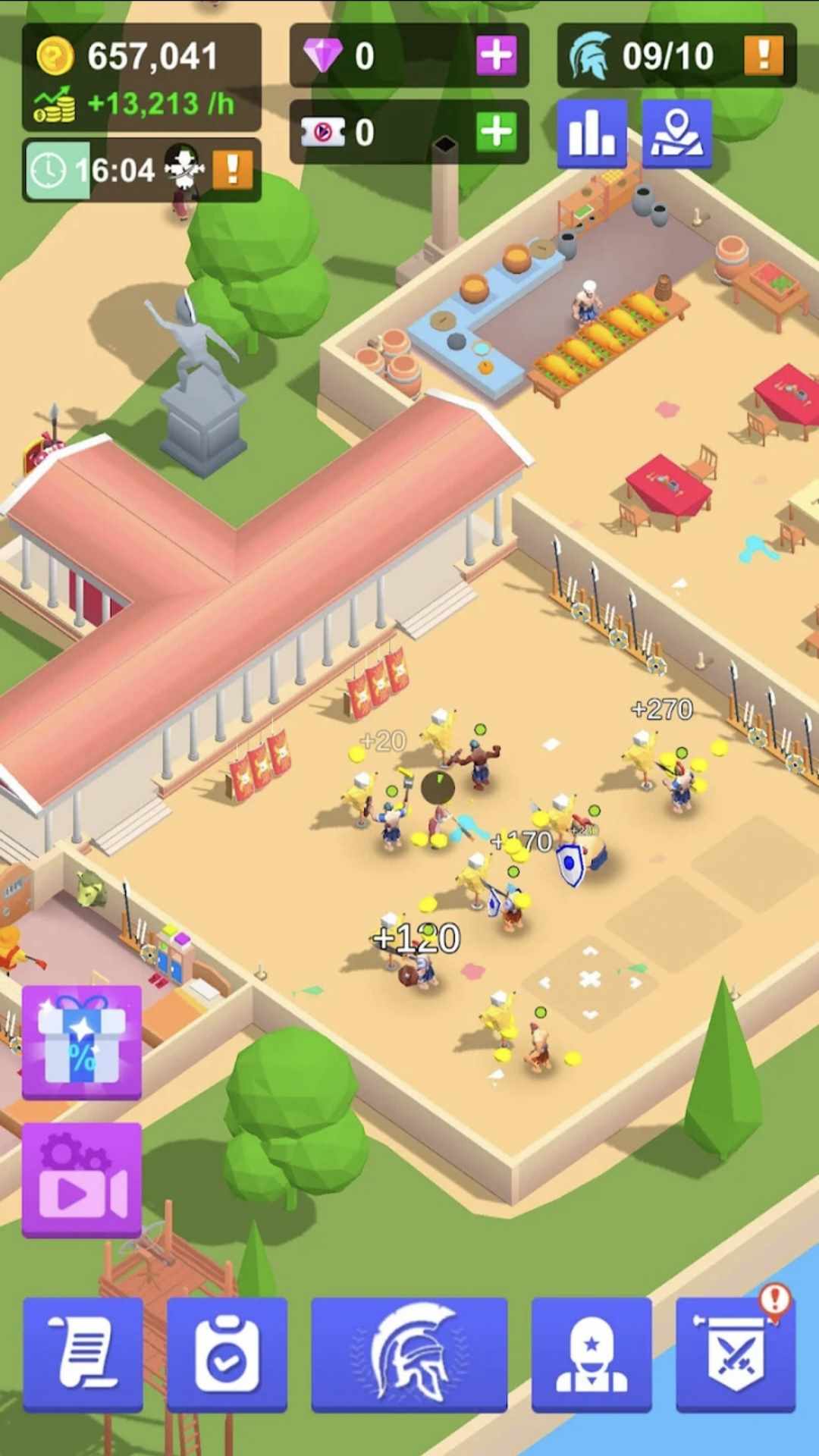 欢迎来到闲置角斗士竞技场,在这里您可以体验管理罗马角斗士竞技场的快感。捕获奴隶,训练他们,装备他们,并观看他们为了荣耀和利益而进行史诗般的决斗。升级你的角斗士,解锁新的竞技场,面对更强大的对手,并成为角斗士世界的终极冠军。不仅可以从胜利的战斗中获得收入,还可以从奴隶磨练技能的定期训练中获得收入。您准备好建立自己的帝国并成为闲置角斗士竞技场的传奇了吗?