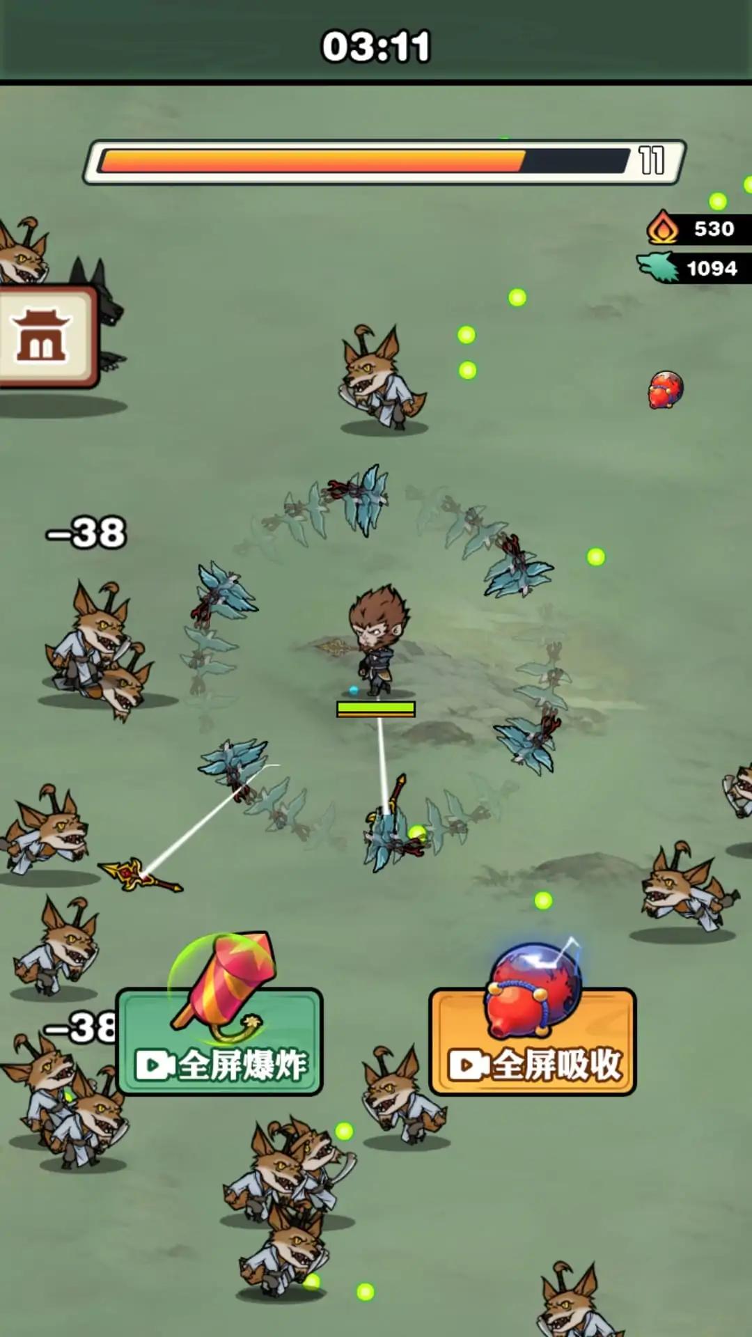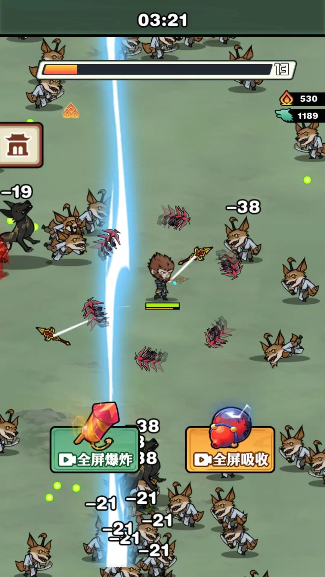 在游戏中在游戏中你需要滑动屏幕控制角色移动躲避敌人的攻击,通过收集经验值升级提升实力,升级后挑选当前适合自己的技能,靠着合理的技能搭配迎战终极BOSS。