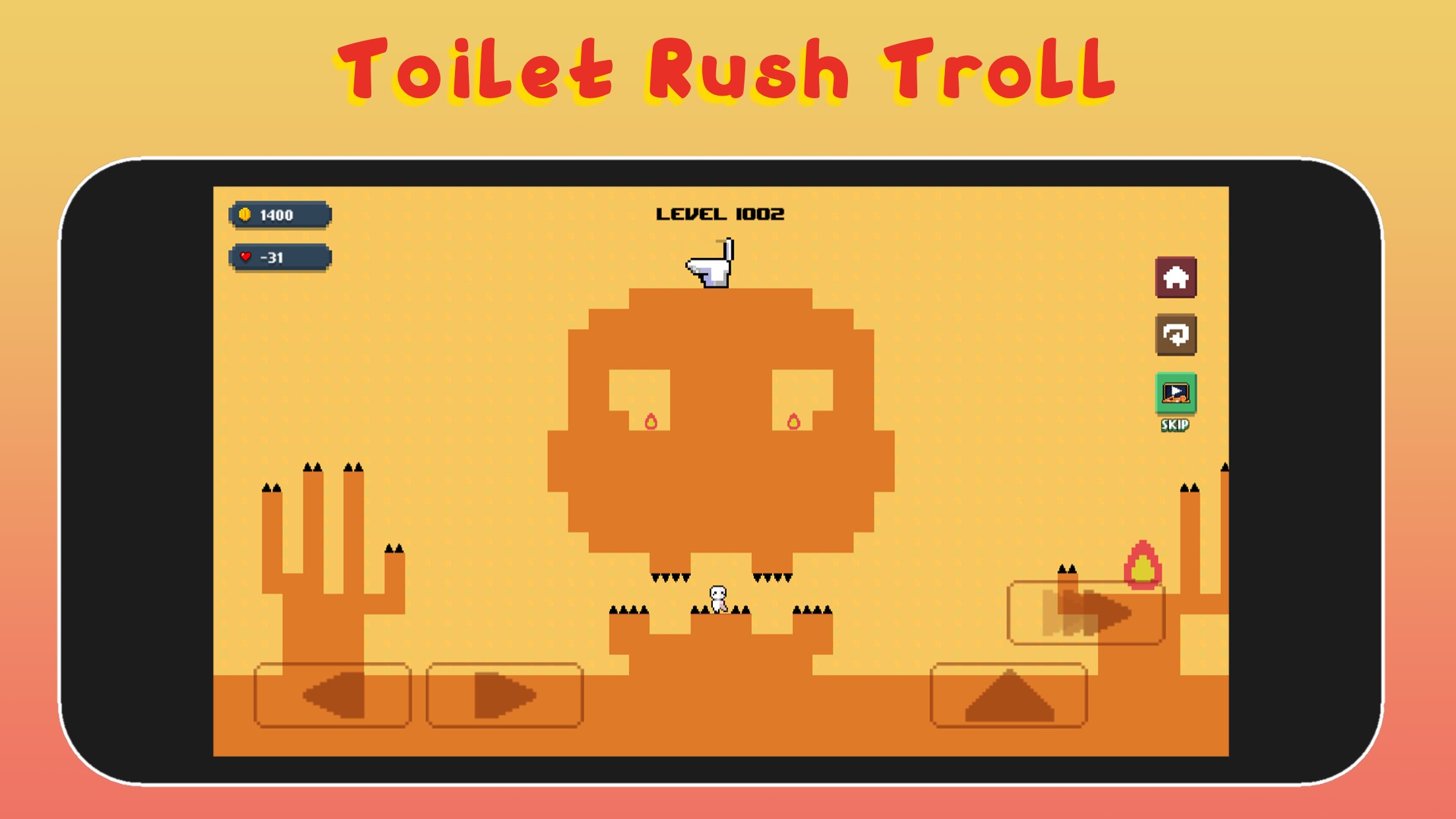 《只有一道门(马桶版)》是一款搞笑的益智游戏,每一关都是一个新的挑战!引导你的角色穿过布满隐藏陷阱和意想不到的障碍的地图,到达厕所。随着难度的增加,你需要技巧、记忆力和一点运气才能成功。在游戏中前进时,用时尚的服装定制你的角色。 准备好应对终极厕所冲刺了吗?立即下载并开始你的冒险: 1. 独特而有趣的挑战:与其他益智游戏不同,这个游戏让你不断猜测。没有两个关卡是相同的,每个关卡都提供新的转折来让你保持娱乐。 2. 测试你的技能:这个游戏不仅仅是关于反应能力——它与策略、记忆力有关,有时只是纯粹的运气。它非常适合喜欢挑战并且不怕失败的玩家(因为让我们面对现实,你会失败——很多次)。 3. 搞笑和出乎意料:情况的荒谬性使每次游戏都成为一次有趣的体验。游戏中的幽默轻松愉快,场景非常搞笑,即使输了也会笑个不停。 4. 持续更新:我们一直在添加新关卡、陷阱和服装,让游戏保持新鲜和刺激。总有新东西等着你去发现!