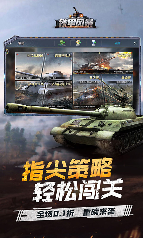 《铁甲风暴》是一款3D策略卡牌游戏,题材取自二战坦克战争,以收集各类传奇坦克及坦克策略搭配为核心玩法,社区化、阵营化合作与竞争为辅助手段。