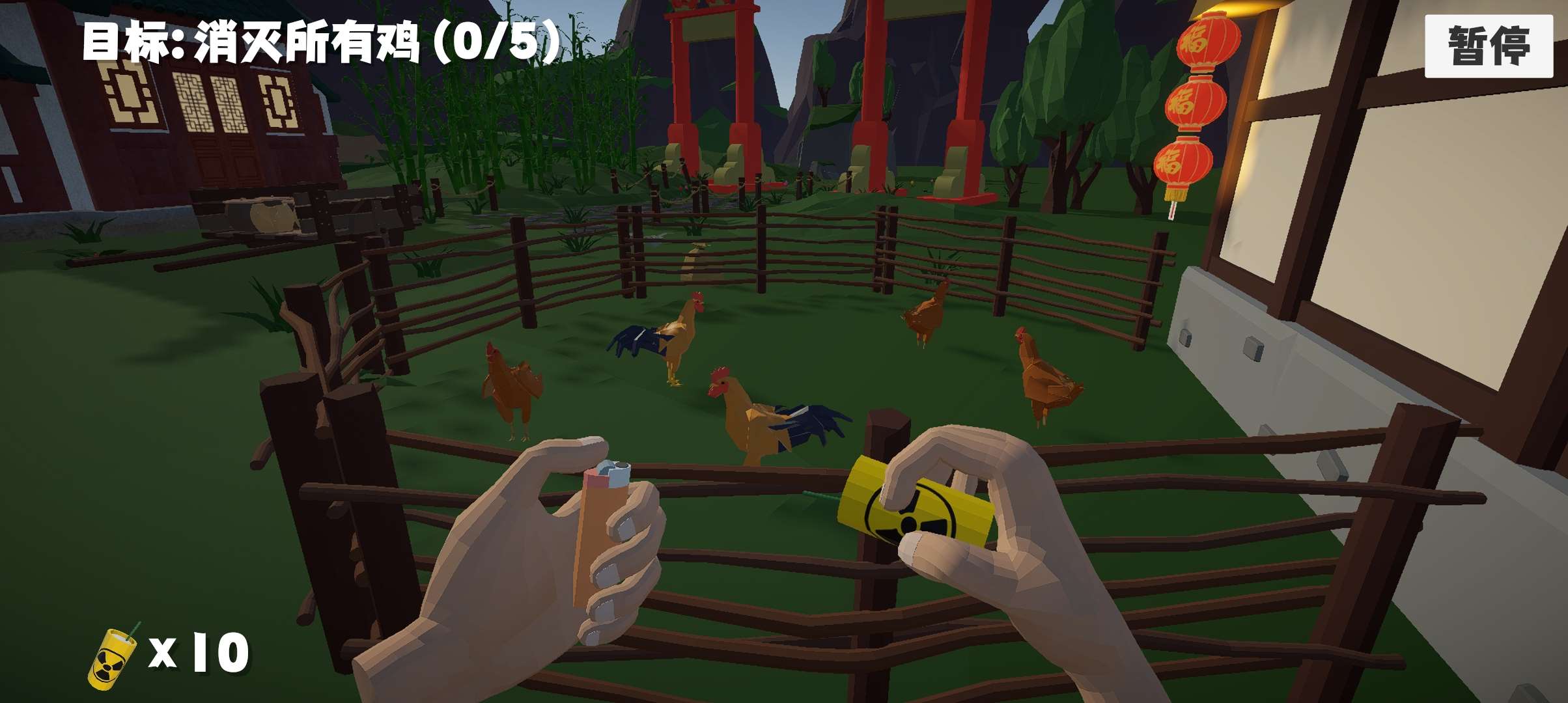 游戏不仅仅是简单地放鞭炮,而是充满了各种各样的趣味挑战。在每个关卡中,你将有不同的目标物,可能是一些不常见的物品——易拉罐、陶瓷盘子、甚至是粑粑和小鸡等,准备好测试你的投掷技巧吧!游戏为玩家提供了多样的挑战任务,你需要准确地瞄准这些奇葩的目标,并通过精准的投掷来达成爆破任务。