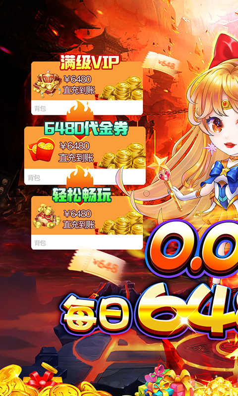 ★福利②:【每日代充】每日上线领取6480代充券,无门槛消耗,可直接用于充值或者购买礼包;