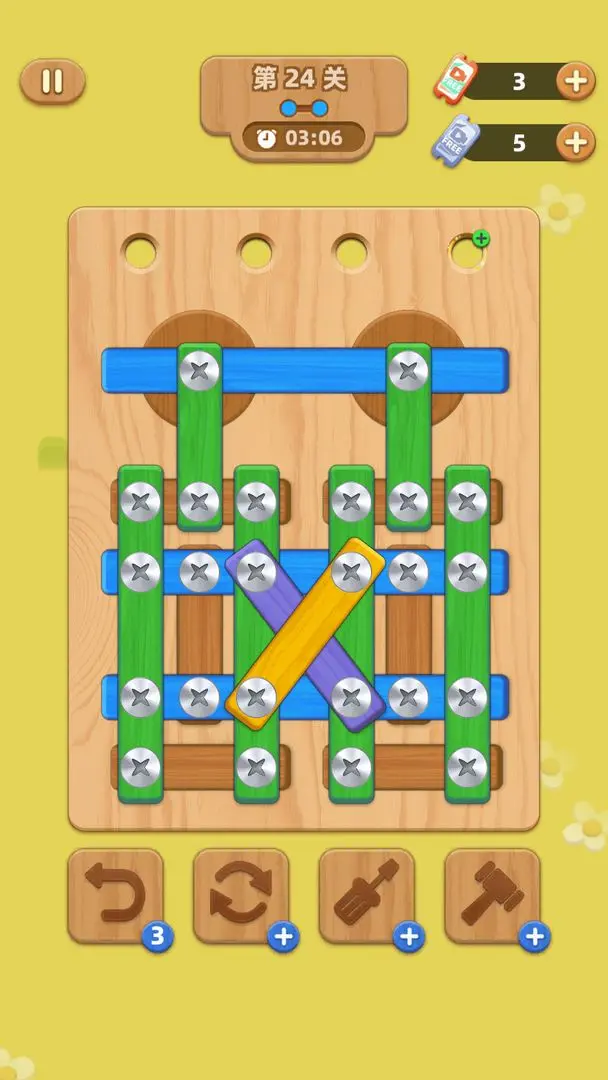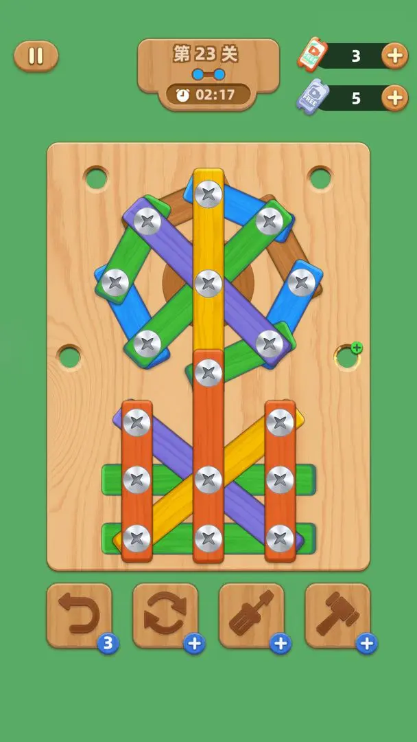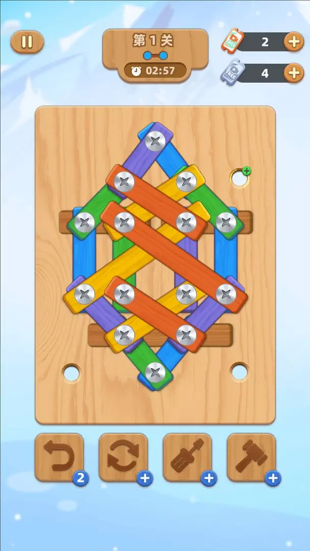 拆螺丝的过程并非无脑点击,而是需要结合观察、推理与策略,步步为营,才能顺利破解关卡。你需要仔细分析木板的连接方式,找到关键螺丝,从最优顺序入手,依次拆卸,最终完成挑战。