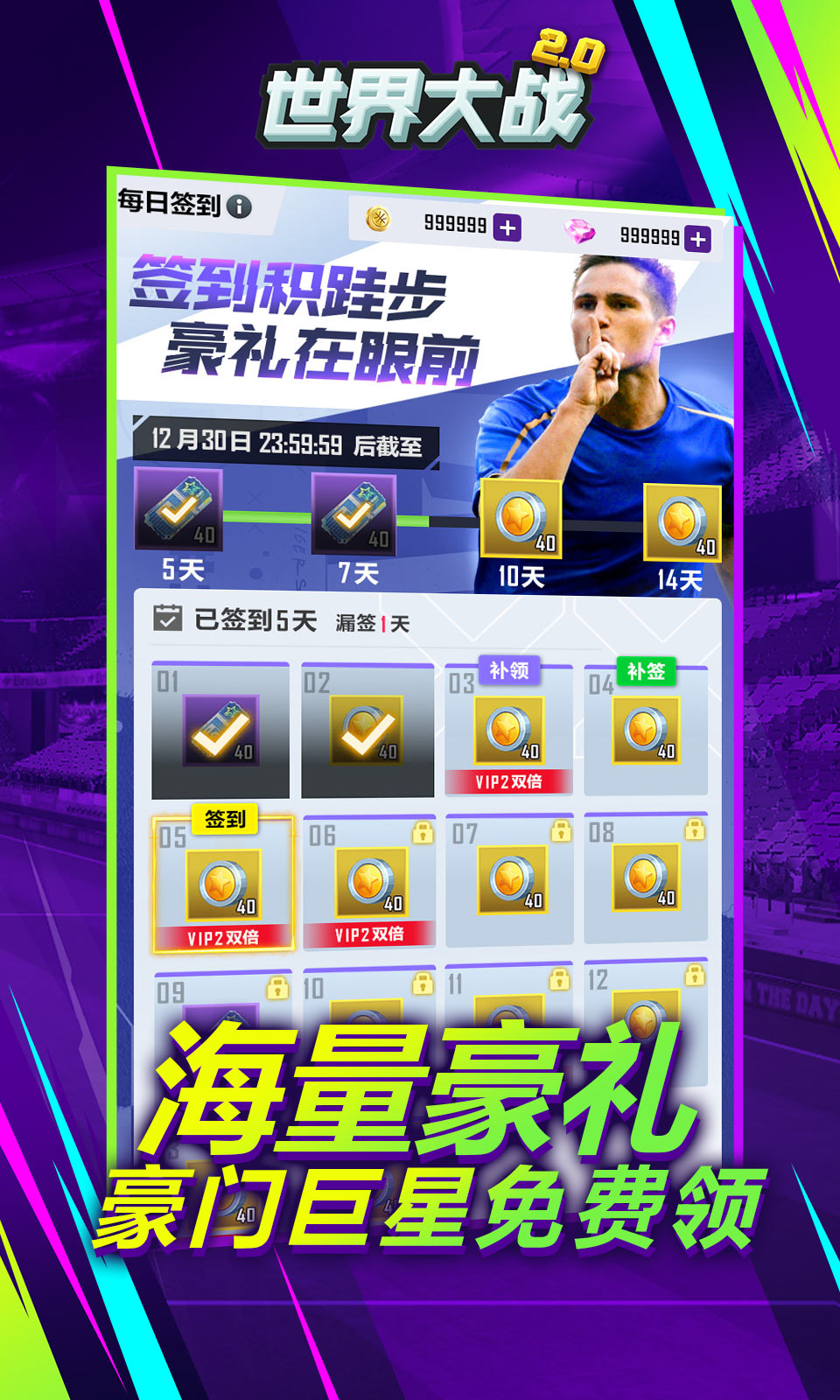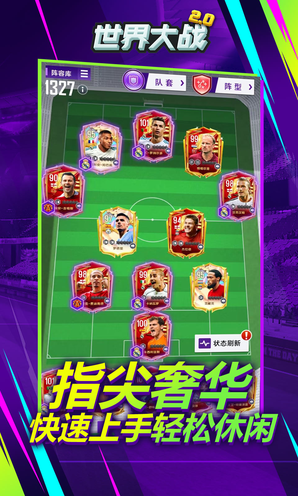 欢迎加入《世界大战》,全新玩法等您开启!在这里您将化身为球队经理,真实模拟球队运营,自由搭配球队阵型和引援,球馆球场球员全方面都由你来定制!打造一支属于你的冠军之师!更有诸多福利活动等待你来参与!各位优秀的经理人,快来《世界大战》打造你的豪门阵容吧!
