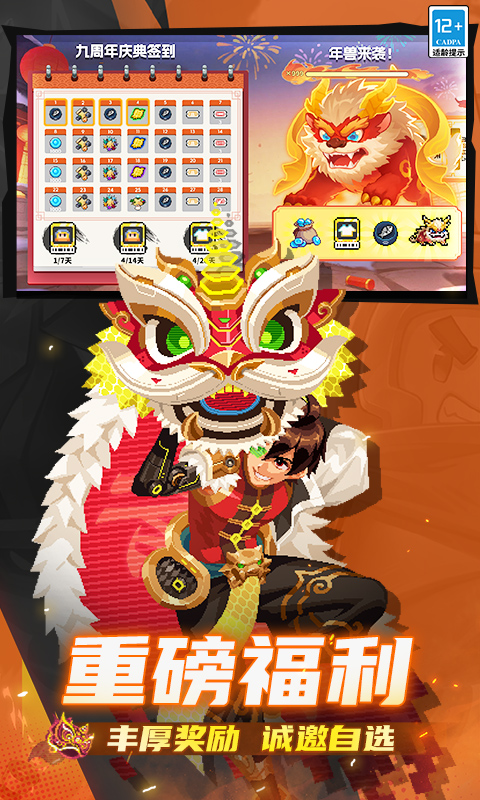 「年兽来袭!」:与其他小骑士组队完成任务获得炮仗,使用炮仗成功驱赶年兽,可得终极大奖!参与可获取限定宠物来财、自选付费皮肤(10选1)、小鱼干等丰厚奖励!