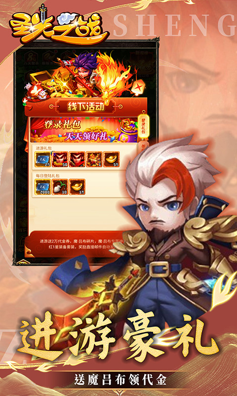 《圣光之战》是一款全新三国卡牌挂机版,减少手动操作,更多的时间让主公去思考策略与布局。超炫萌系画风,结合卡牌体系,使玩家亲临其境,将各路三国英雄收入麾下,一统三国。游戏开局直接送一套GM装备,升级再领万元红包,还有每天完成任务皆能领取红包,福利爆满,游戏简单容易上手,轻松滑动指尖,放置挂机养成,给您不一样的游戏体验!