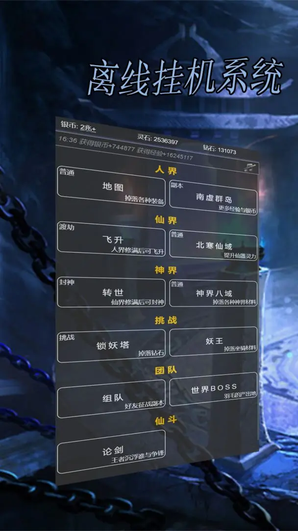 每日无需苦守屏幕,角色便可在你离线时自动修炼。打坐入定,吸纳天地元气;参悟功法,累积灵识与修为。从练气、筑基到金丹、元婴……每一个境界的突破,都有仪式般的静谧与震撼。