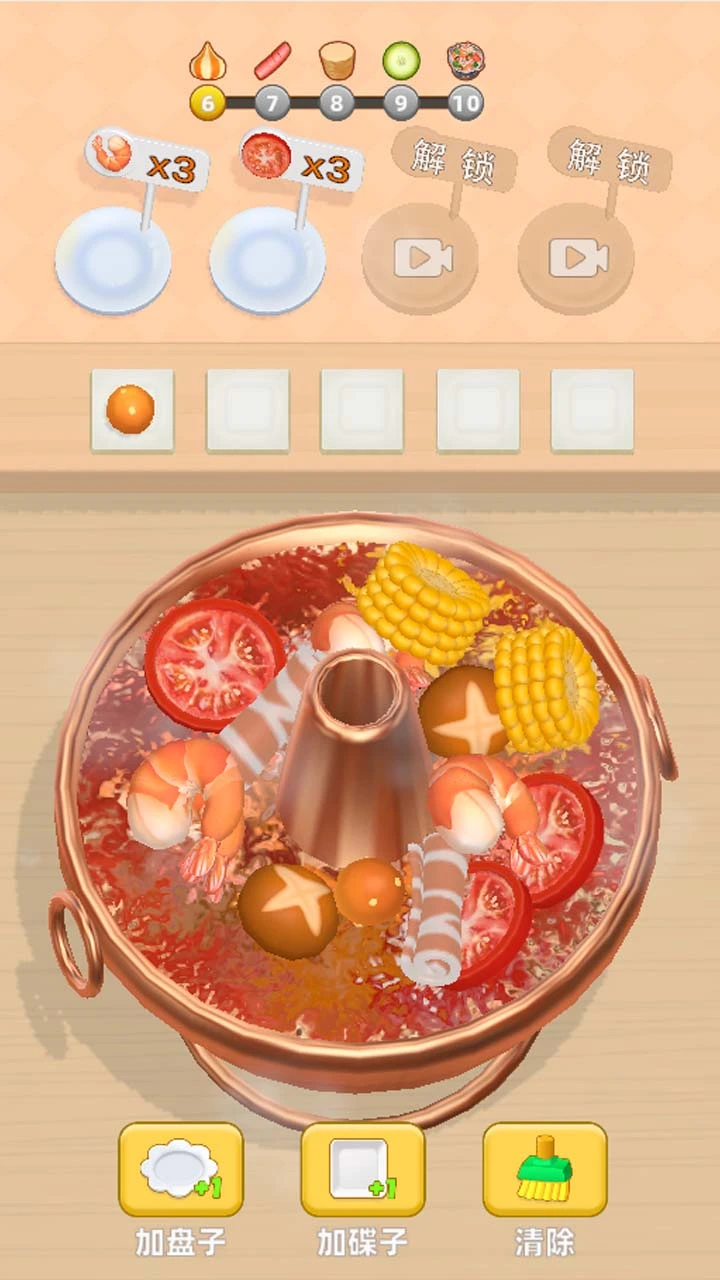 通过关卡挑战收集“火锅币”和“调料积分”,可逐步解锁自己的专属火锅小馆。桌椅样式、墙纸图案、锅具风格、背景音乐等均可自定义。还能根据玩家偏好选择“重庆火锅”“潮汕牛肉锅”“菌汤火锅”等不同流派的主题装饰。每次搭配都会带来小小的互动效果,如猫咪客人送上小礼物、网红顾客点评、烟火庆典等,为馆子增添活力。