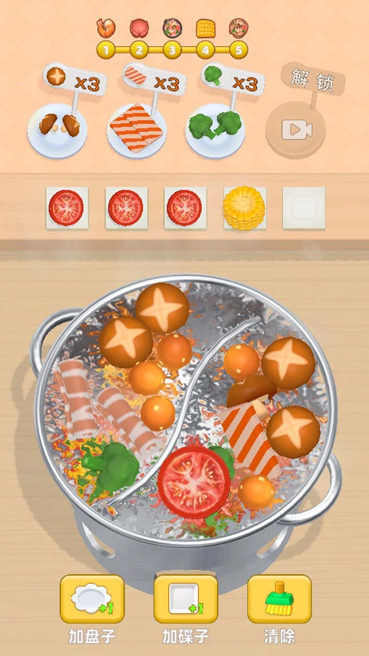 热气腾腾的锅底翻滚着浓香的汤汁,三荤三素按序入席,食材排列之间,隐藏着精妙的连锁反应。在这款以火锅为主题的消除益智游戏中,玩家不只是吃货,更是调度全局的“锅主”,要在有限的步数内完成目标任务,用手指构建一场场味觉与策略并行的狂欢。